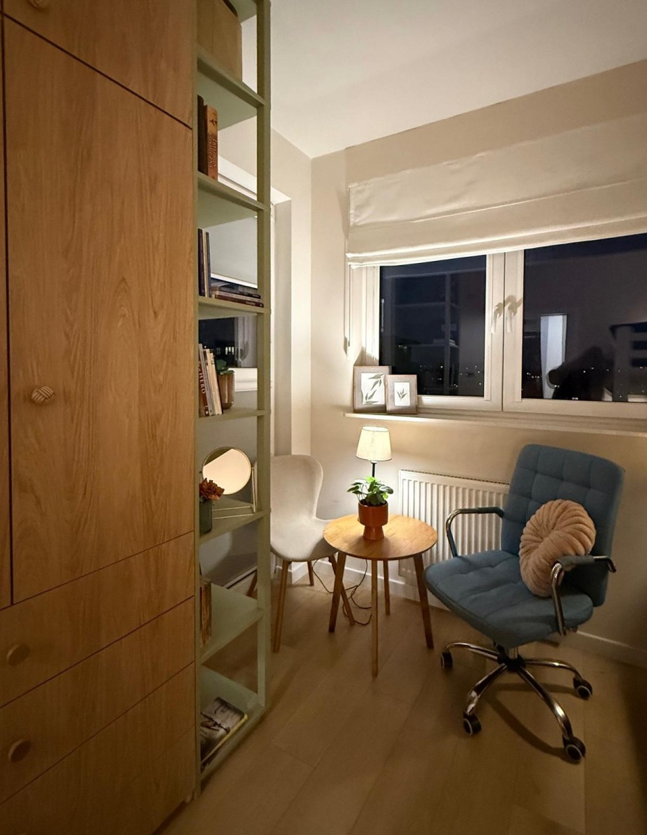 Istnieje możliwość wydzielenia dodatkowego pokoju w salonie.