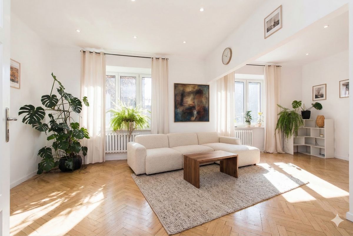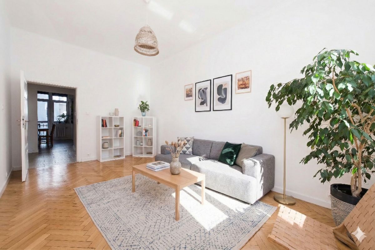 Apartament o powierzchni 91,2 m² oferuje przestronny, klasyczny układ z ogromnym potencjałem aranżacyjnym, idealny pod luksusowy apartament prywatny lub prestiżowe biuro.