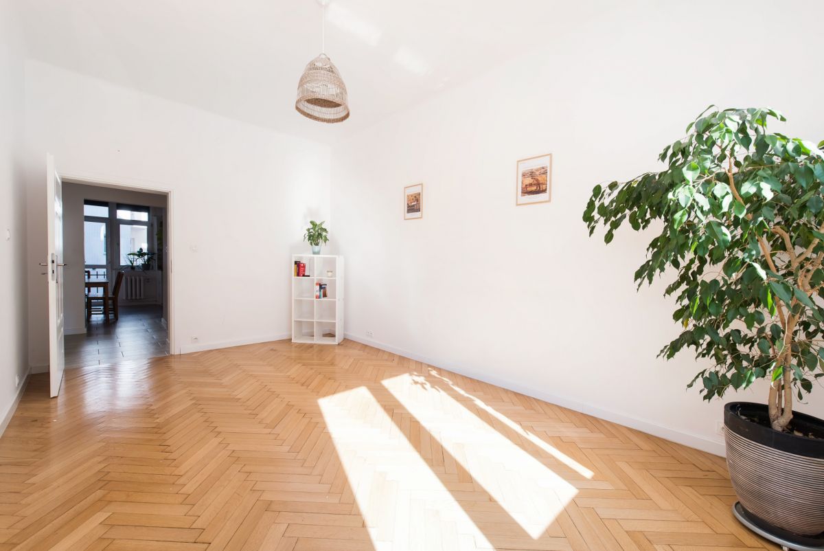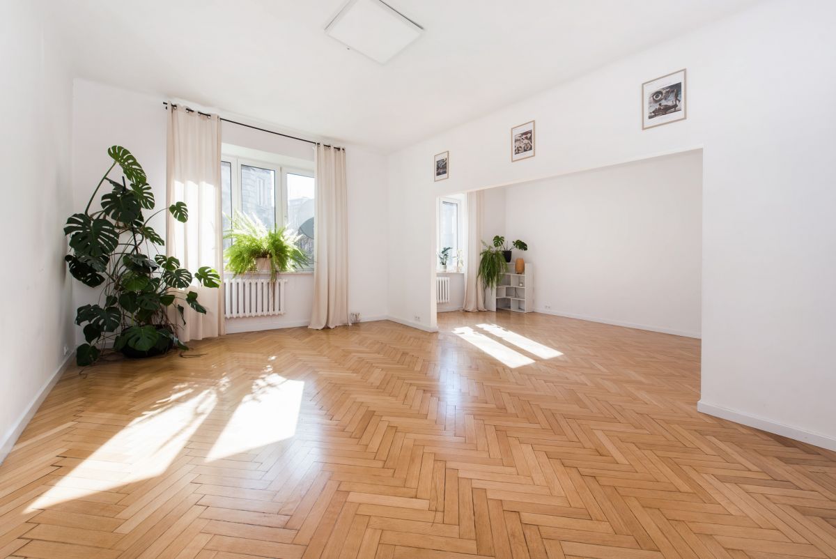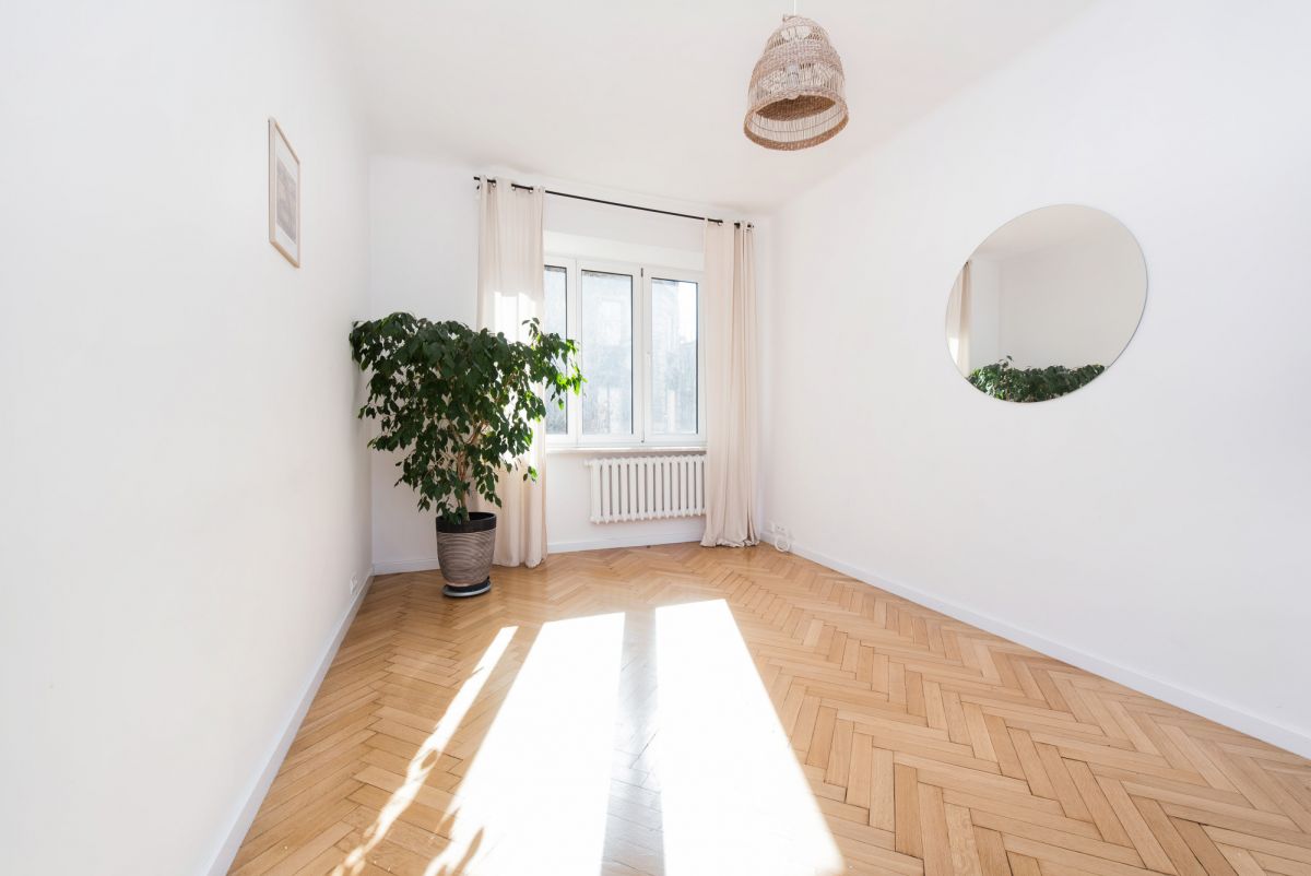 Detale: W pokojach zachowano oryginalne dębowe parkiety, które stanowią szlachetną bazę do renowacji lub nowoczesnej interpretacji wnętrza.