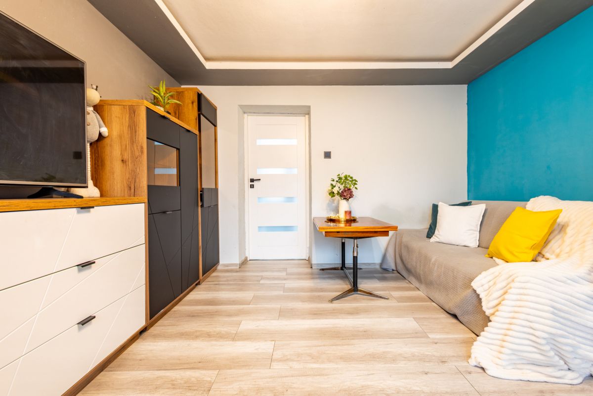 Aby podkreślić potencjał wnętrz, zdjęcia mogły zostać wykonane z wykorzystaniem elementów dekoracyjnych w ramach usługi home stagingu - aranżacja jest przygotowana wyłącznie na potrzeby prezentacji i nie stanowi części oferty. Dzięki temu przyszły właściciel może urządzić mieszkanie w dowolnym stylu.
