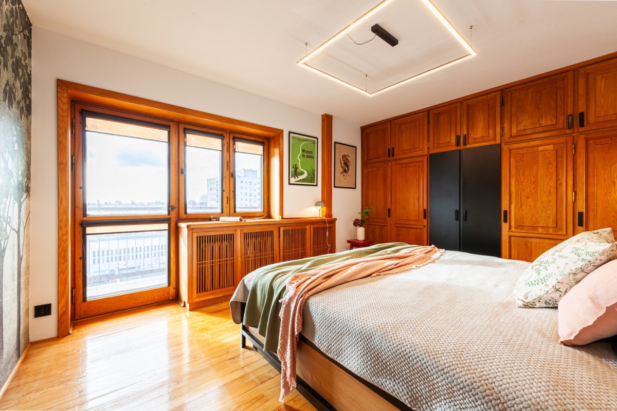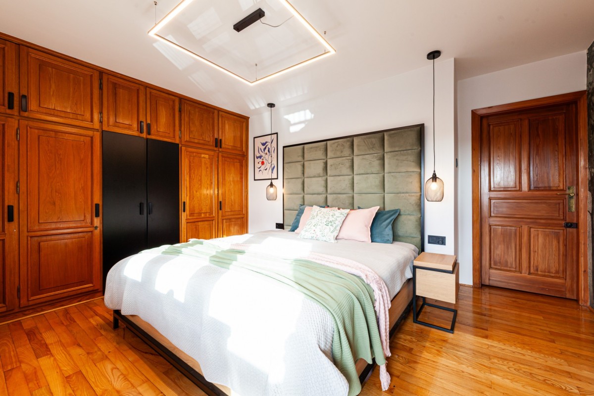 Główna sypialnia zachwyca nie tylko wielkością, ale też klimatem. Przestronna, z dużymi oknami i wyjściem na drugi, naprawdę duży balkon. Tu będziesz pić kawę w łóżku i łapać się oddech, gdy miasto dopiero budzi się do życia. Do Twojej dyspozycji będzie również niepowtarzalna szafa w zabudowie, gotowa pomieścić więcej niż garderobę na jeden sezon.