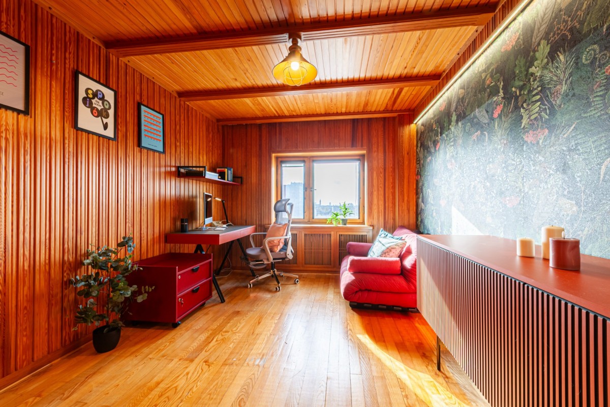 W 2024 roku mieszkanie przeszło gruntowny remont, który nie próbował zgasić jego charakteru. Wręcz przeciwnie — miał go podkreślić. I zrobił to znakomicie. Odświeżona boazeria nadaje wnętrzom tej wyjątkowej miękkości, której nie da się podrobić współczesnymi materiałami. To idealne połączenie retro i nowoczesności — eleganckie, nastrojowe, jedyne w swoim rodzaju.