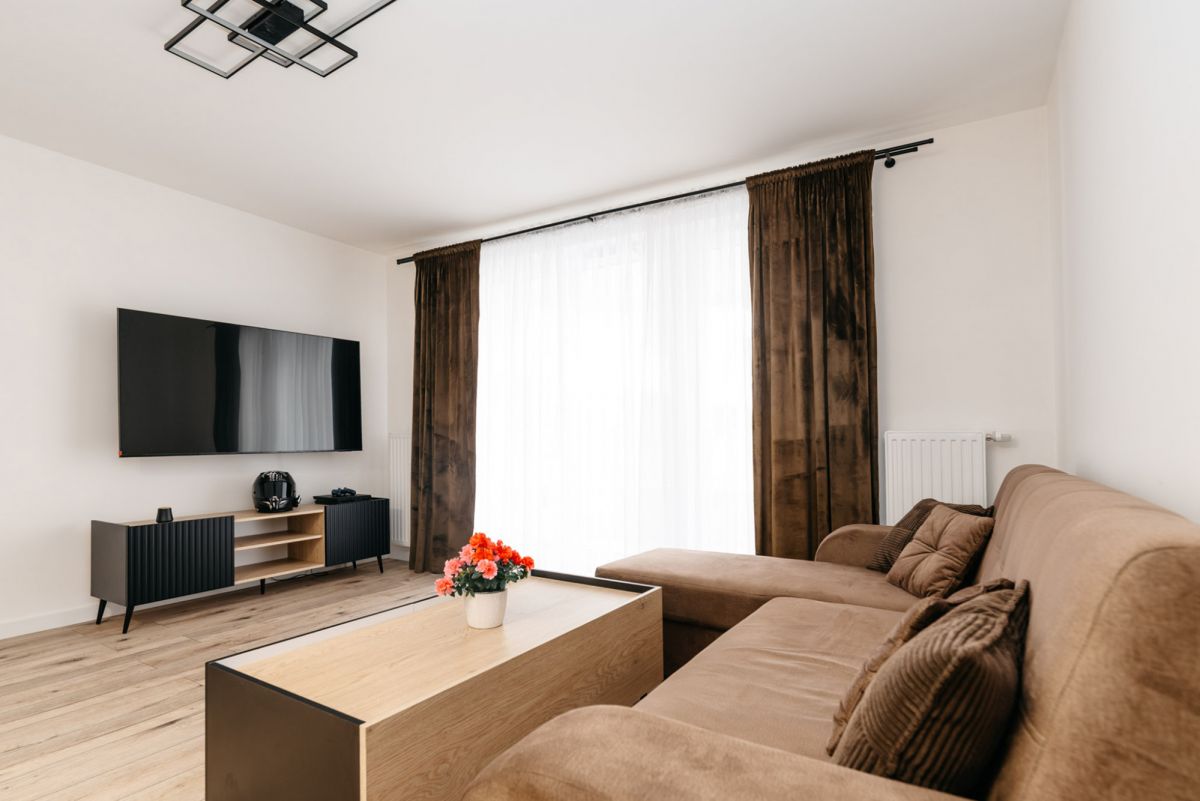 Lokal o powierzchni 40,02 m² składa się z salonu z aneksem kuchennym, oddzielnej sypialni, łazienki oraz przedpokoju. Z salonu prowadzi wyjście na balkon. Mieszkanie znajduje się na 1. piętrze, jest w pełni umeblowane i świeżo po remoncie, co pozwala na natychmiastowe wprowadzenie się. Dzięki dużym oknom jest jasne i dobrze doświetlone.