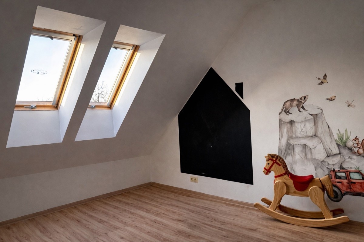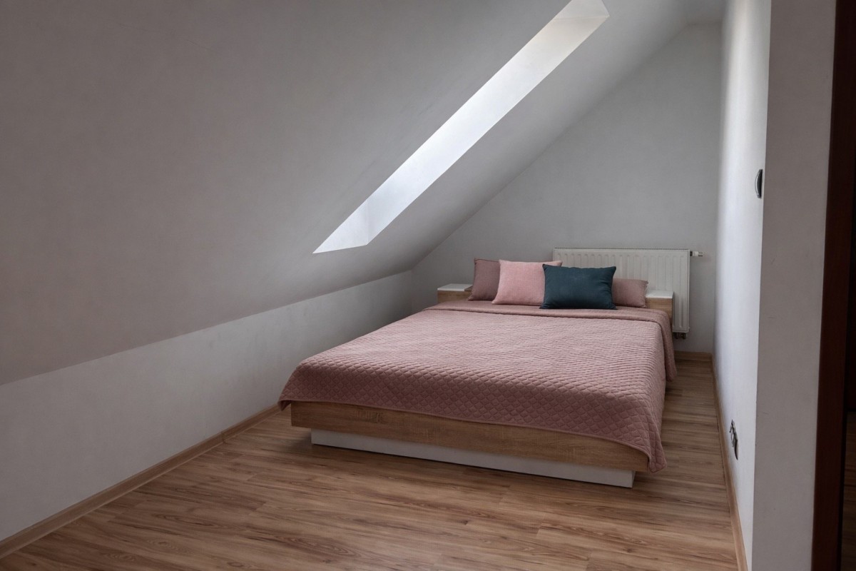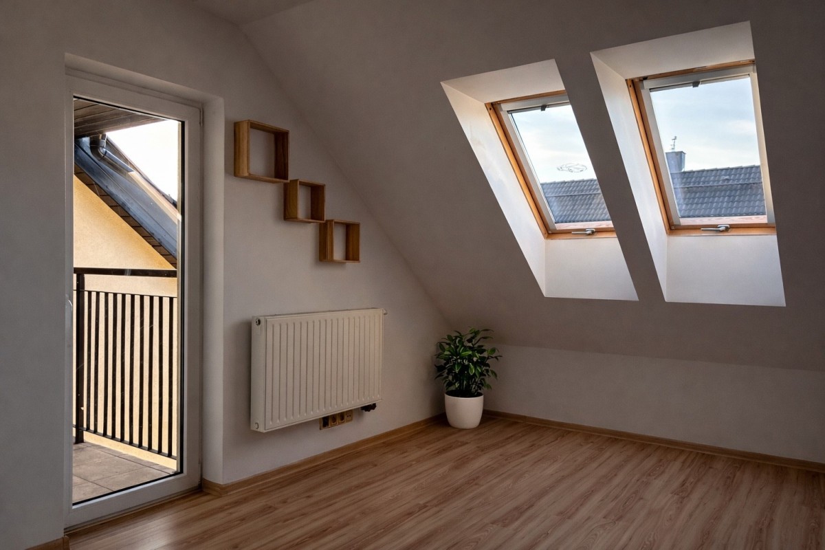Nieruchomość wyróżnia się praktycznym układem pomieszczeń, dwoma balkonami oraz dodatkową przestrzenią magazynową na strychu.