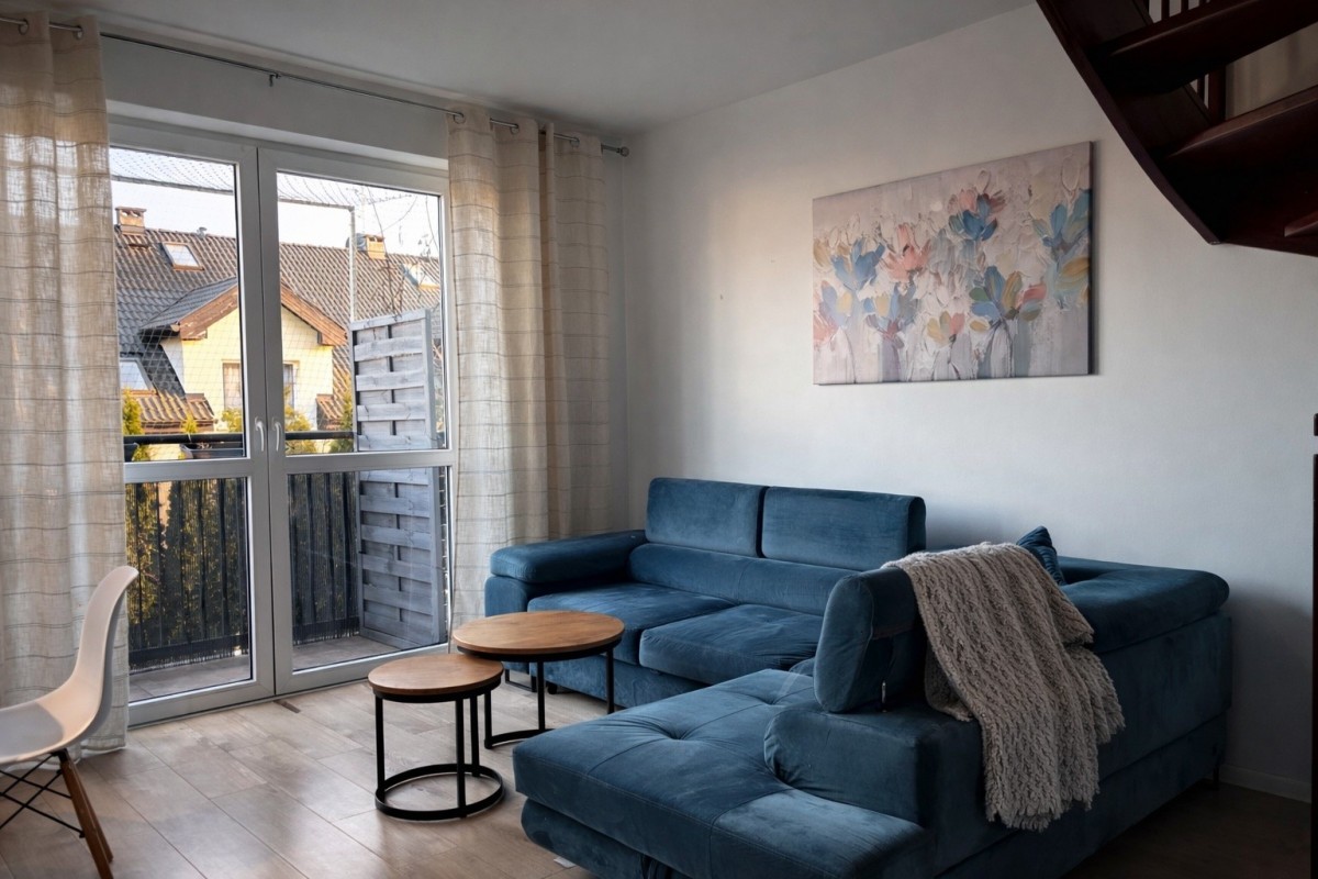 Na sprzedaż funkcjonalne, dwupoziomowe mieszkanie o powierzchni 84,20 m², położone na pierwszym piętrze w budynku z niezależnymi wejściami do każdego lokalu przy ul. Tęczowej w Plewiskach.