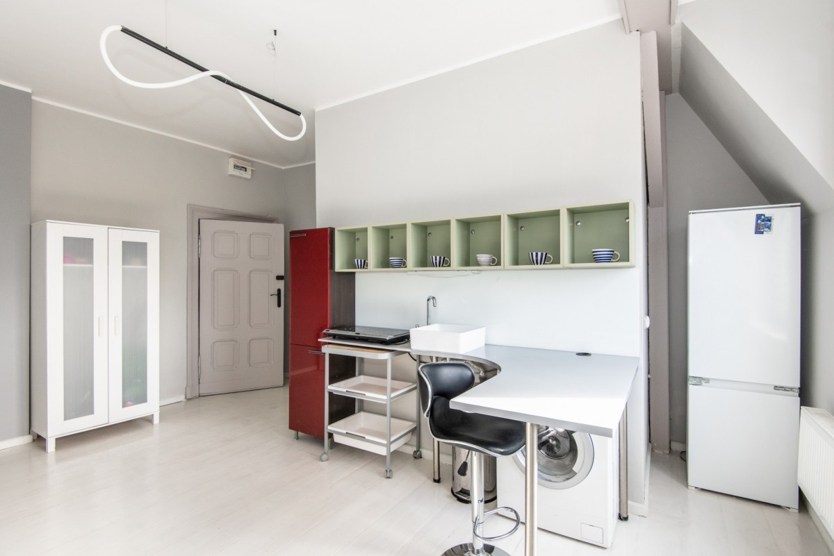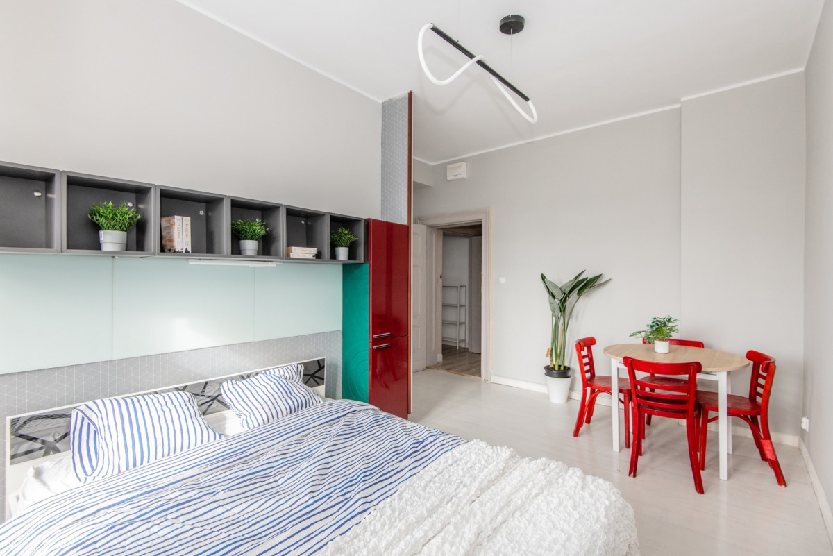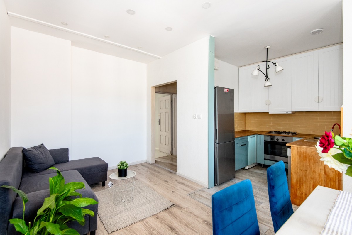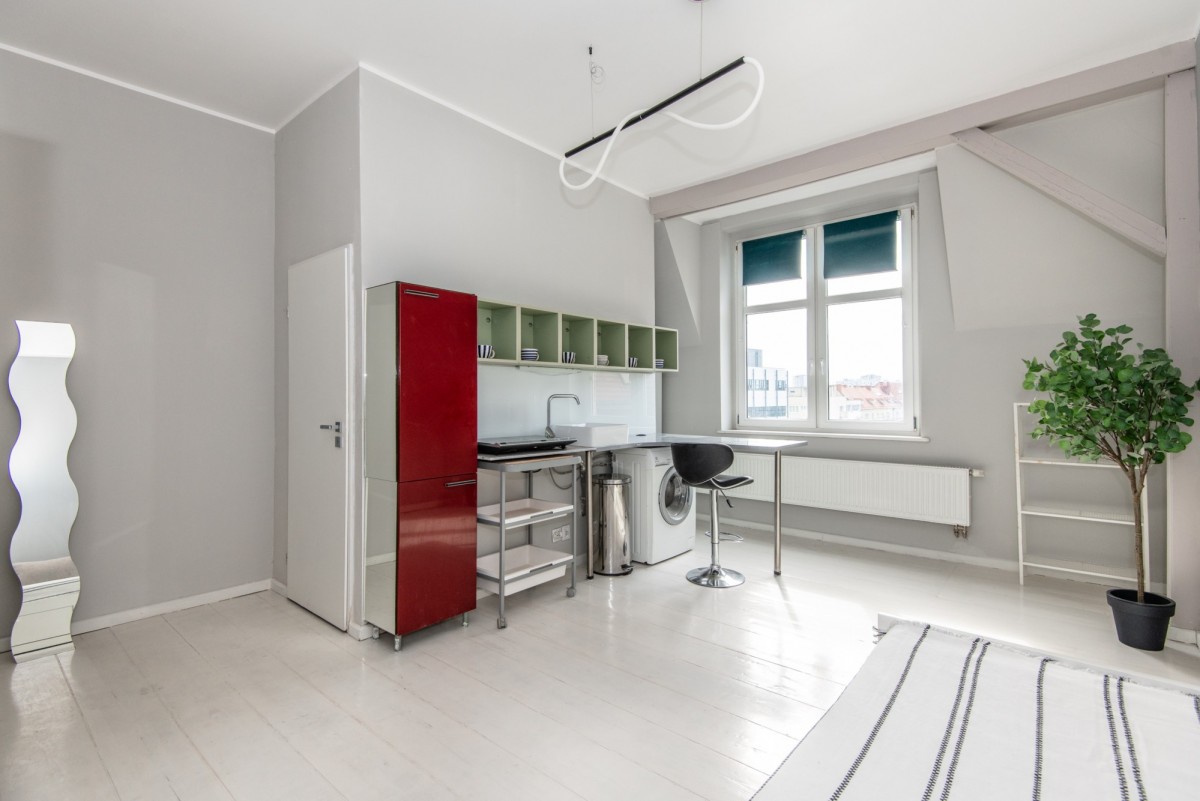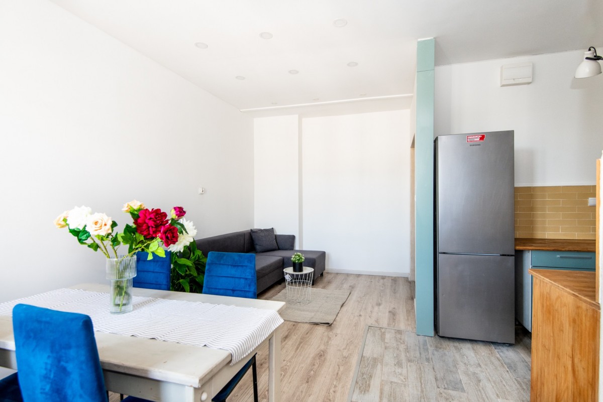 • studio: salon z aneksem kuchennym oraz łazienka - idealne pod wynajem krótkoterminowy lub dla singla
