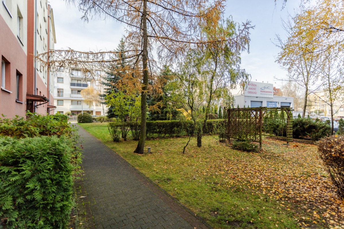 Zadbane części wspólne, zamknięte osiedle i podwórze z dużą ilością zieleni tworzy przyjazną atmosferę.