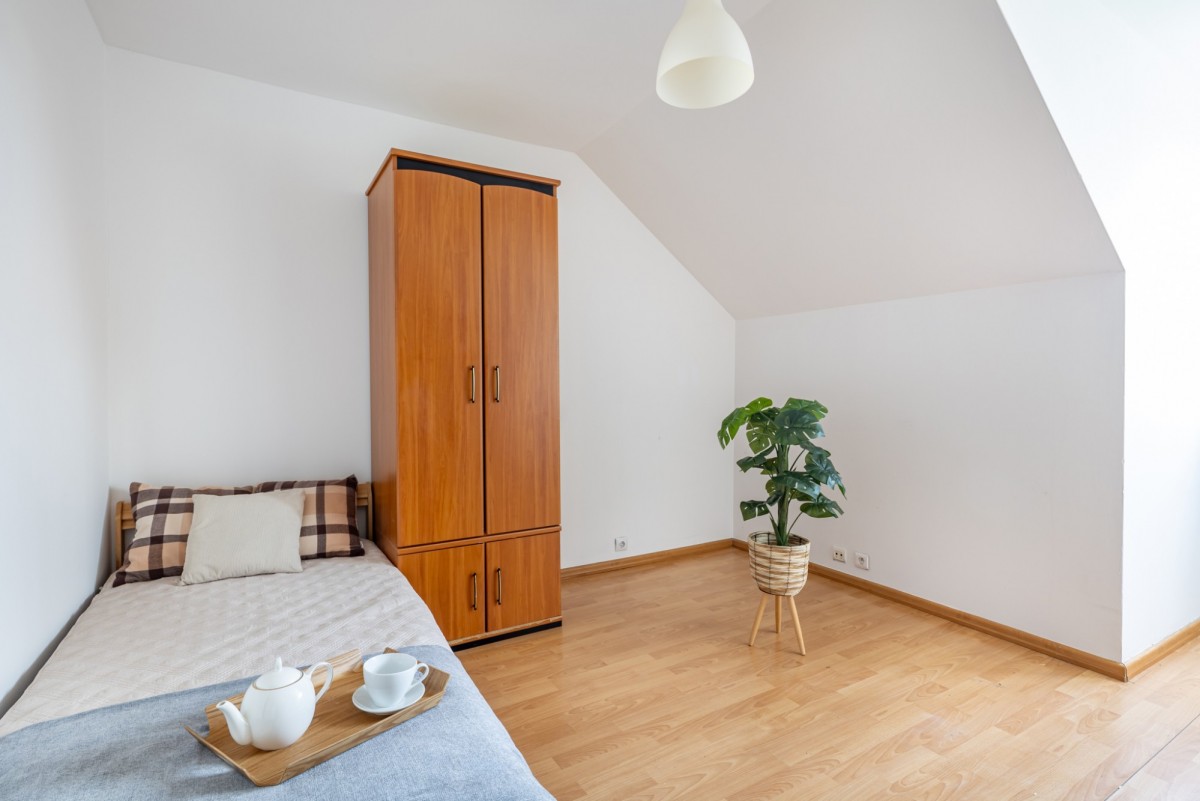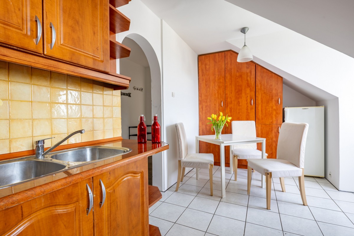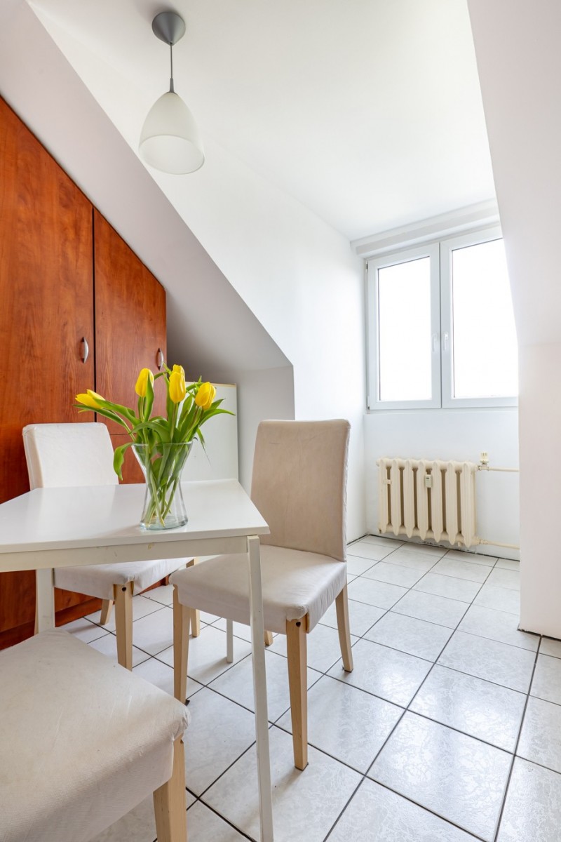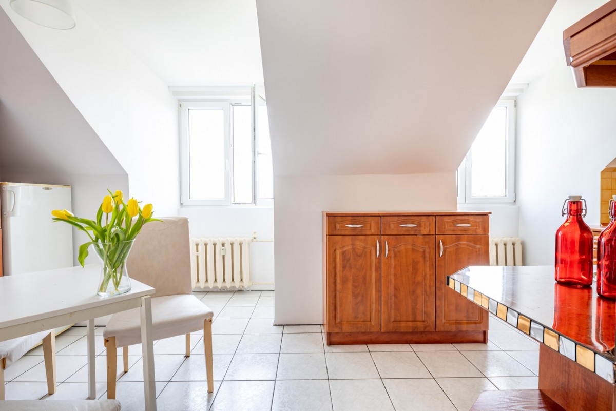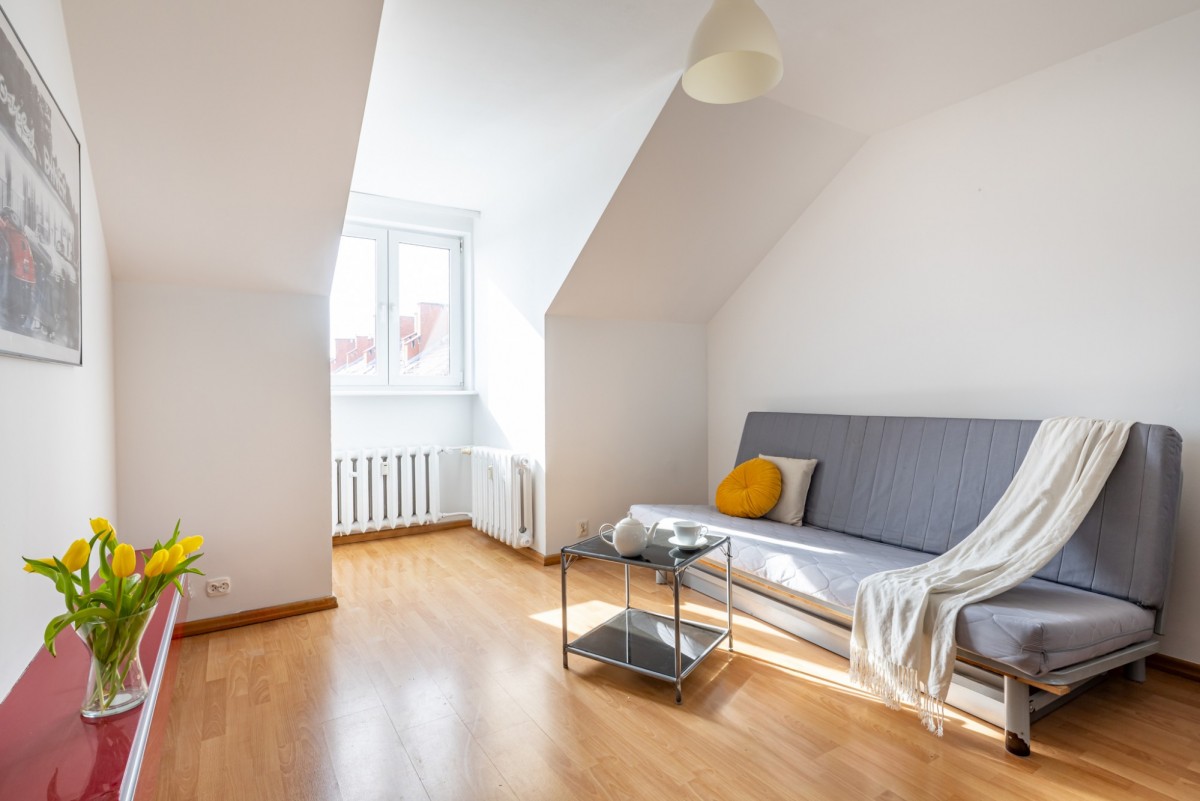 Wyobraź sobie poranek przy otwartym oknie dachowym, ciszę bez sąsiadów nad głową i zieleń dosłownie po drugiej stronie ulicy. To wyjątkowe, klimatyczne mieszkanie na poddaszu łączy spokój natury z wygodą życia w mieście. Kameralny budynek, prywatny teren tylko dla mieszkańców i absolutna cisza sprawiają, że to miejsce trudno porównać z innymi ofertami w tej części miasta.