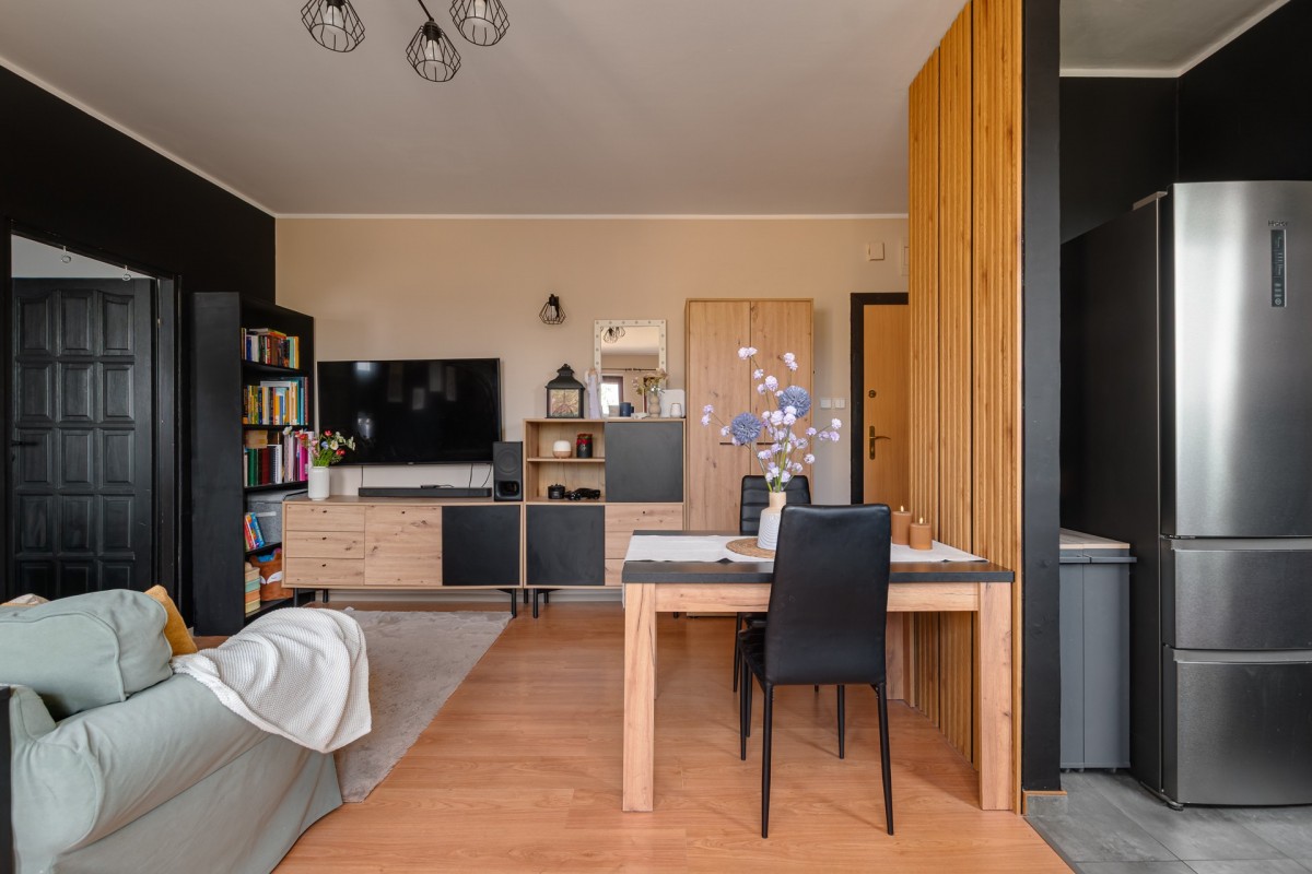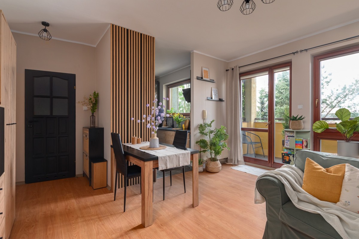 Mieszkanie o powierzchni 39,8 m², położone na 1. piętrze, to funkcjonalna i bardzo przyjemna przestrzeń do życia. Wnętrze wyróżnia się dużymi oknami, które zapewniają doskonałe doświetlenie przez cały dzień, a zachodnia ekspozycja dodatkowo gwarantuje piękne, ciepłe światło w godzinach popołudniowych i wieczornych.