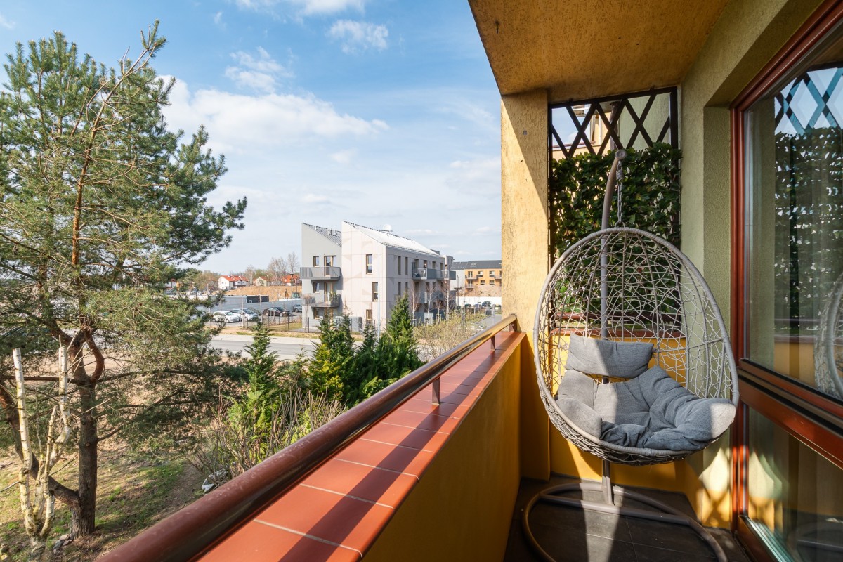 Do mieszkania przynależy przestronny balkon, z którego rozpościera się widok na zieleń - idealne miejsce na relaks po pracy. Dodatkowym atutem jest piwnica o powierzchni 3,2 m², zapewniająca wygodne miejsce do przechowywania.