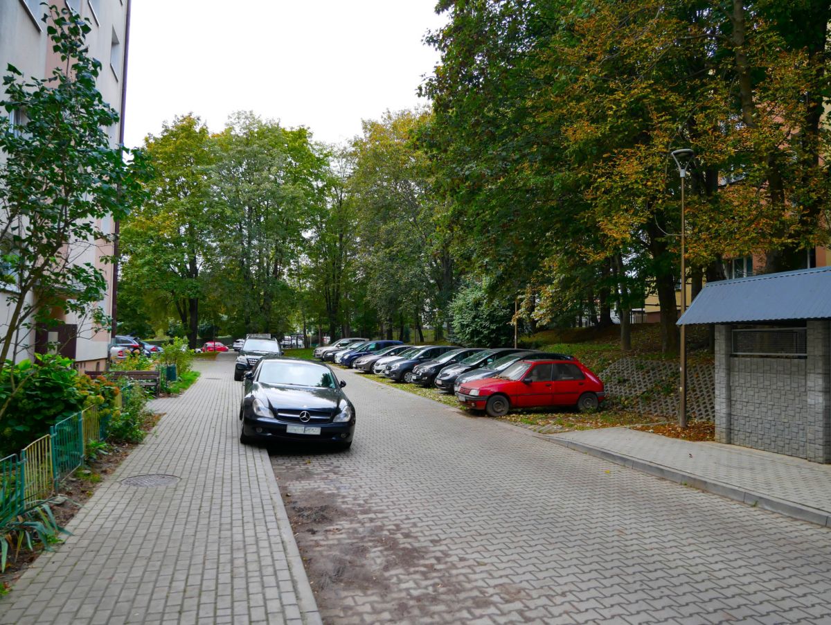 Dla osób, które poruszają się po mieście autem, tuż przy bloku znajduje się ogólnodostępny parking dla mieszkańców bloku. Znajdują się tam liczne miejsca do pozostawienia swojego auta, które zaczynają się już od skrętu z głównej uliczki aż pod sam blok. Dojeżdżając do bloku, mijamy liczne drzewa, które dają kameralny klimat ustronnego, spokojnego osiedla.