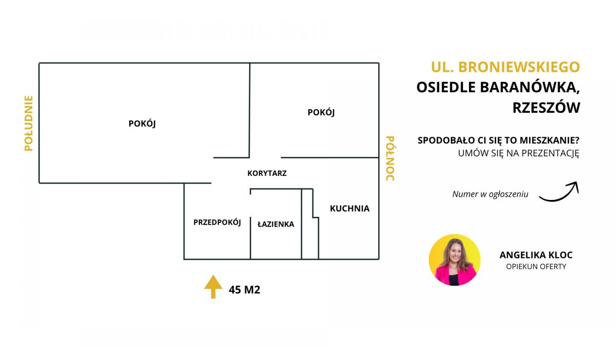 Baranówka, ul. Broniewskiego to doskonała lokalizacja do życia, która dostarcza ogromnej ilości udogodnień tj. sklepy (Kaufland, Biedronka), miejsca rekreacji i przystanki autobusowe oraz instytucje kształcenia tj. WSiZ. Dodatkowo niedaleko zlokalizowany jest Park Sybiraków, Szpital MSWiA oraz Galeria Nowy Świat i Galeria Rzeszów - 2 km. Całość sprzyja wynajęciu lub spokojnemu, komfortowemu mieszkaniu w nim.