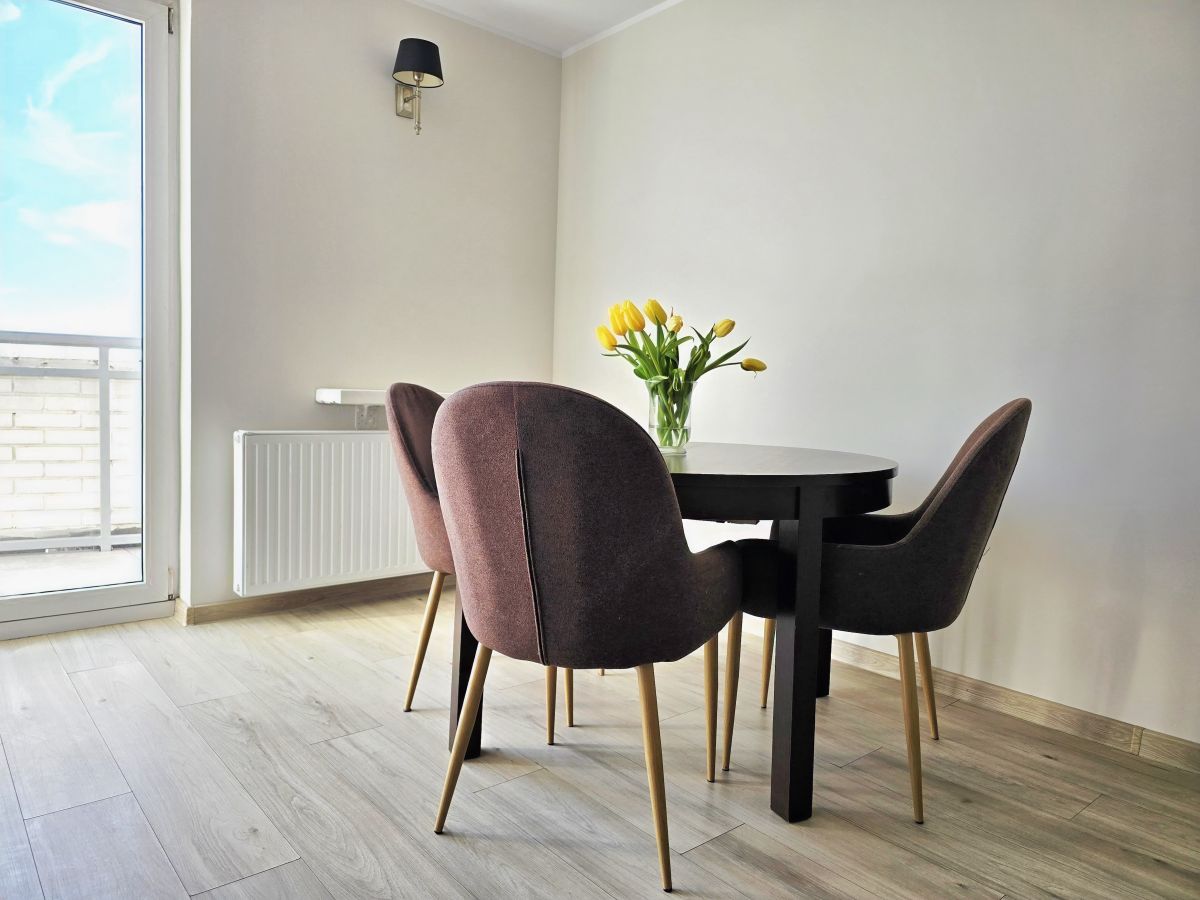 Duży balkon stanowi dodatkową przestrzeń do relaksu w cieplejsze dni.
