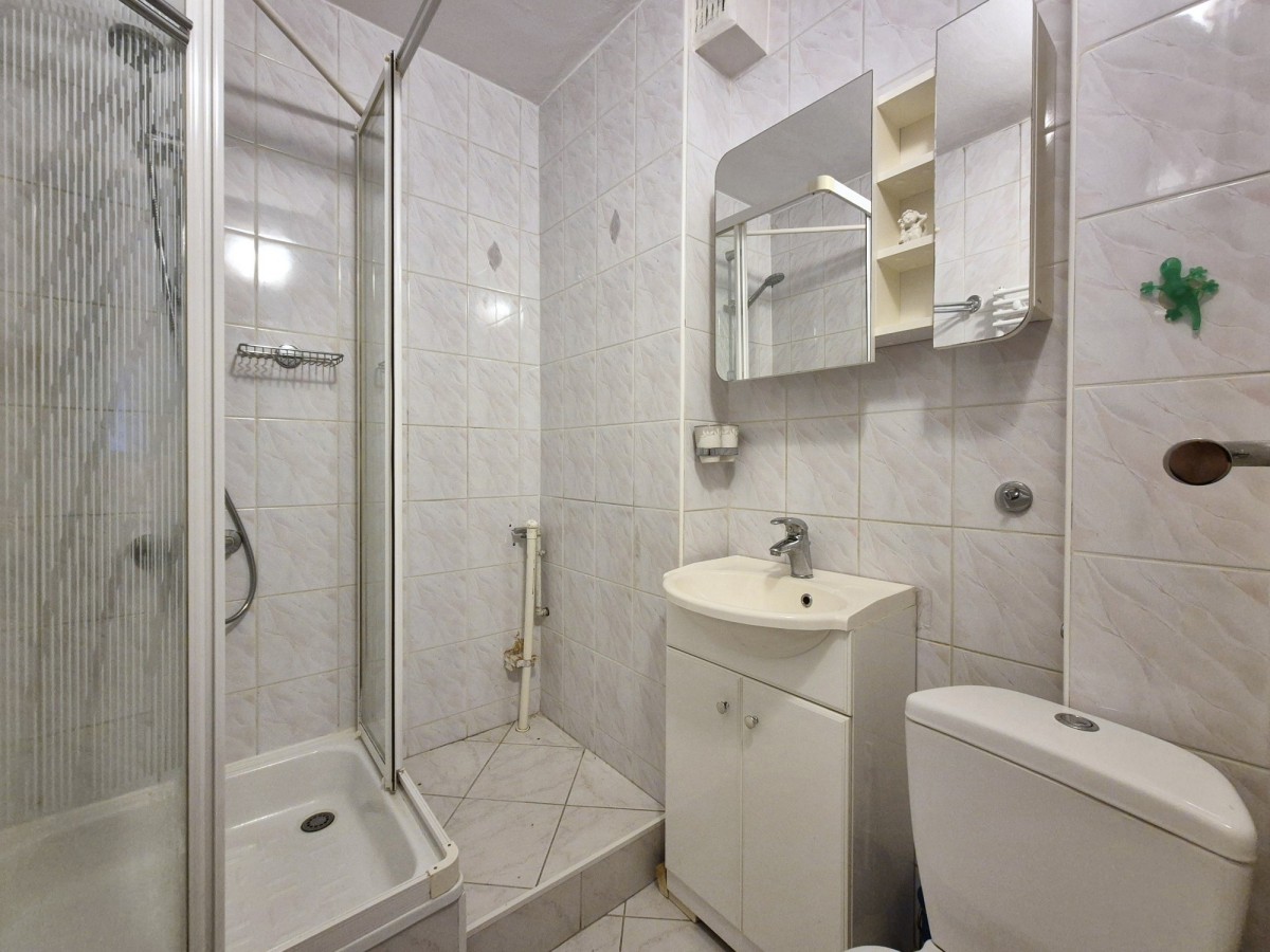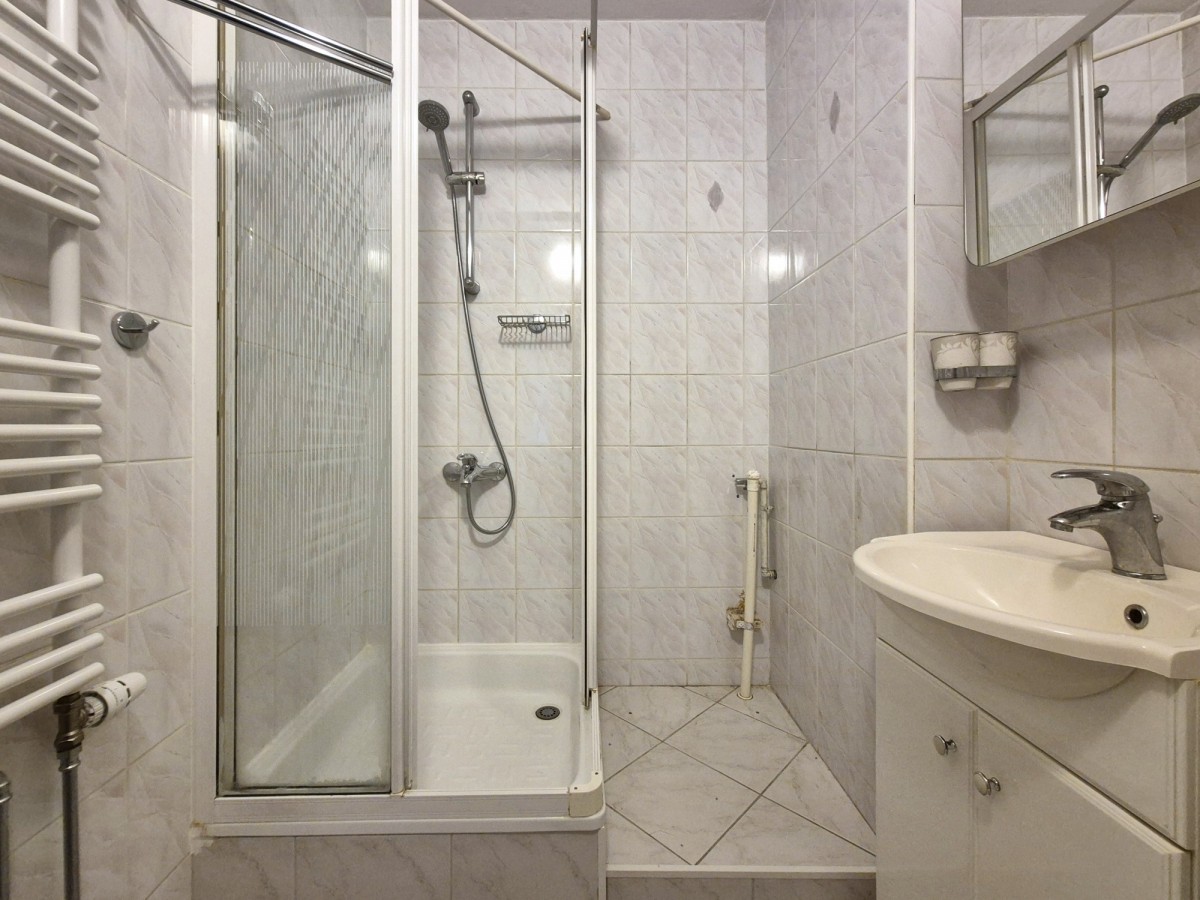 Łazienka bardzo dobrze utrzymana, z prysznicem, WC, umywalką oraz miejscem na pralkę.