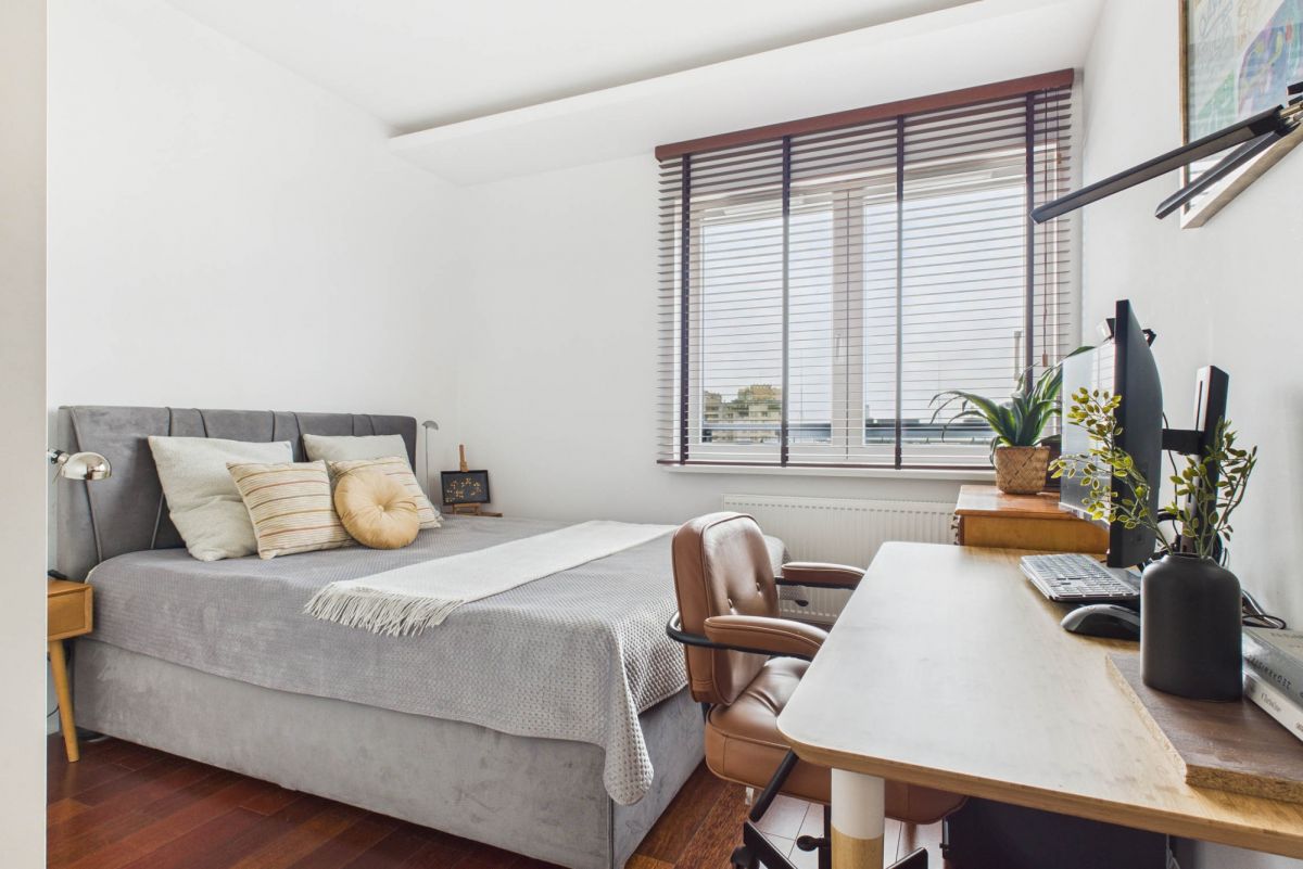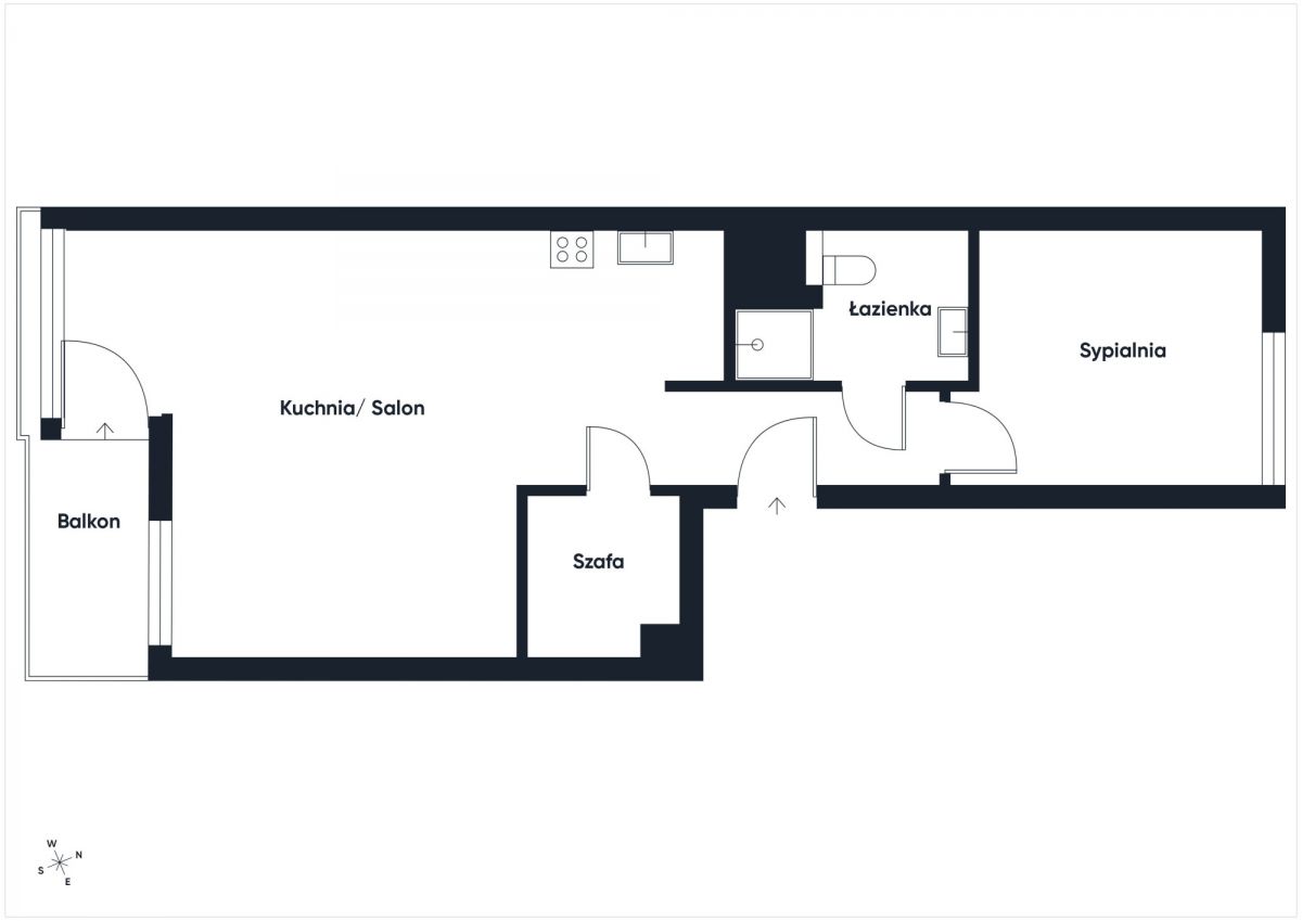 Aktualnie mieszkanie ma układ 2-pokojowy (połączenie pokoju dziennego z sypialnią).