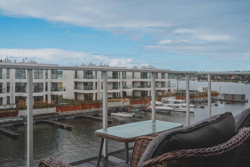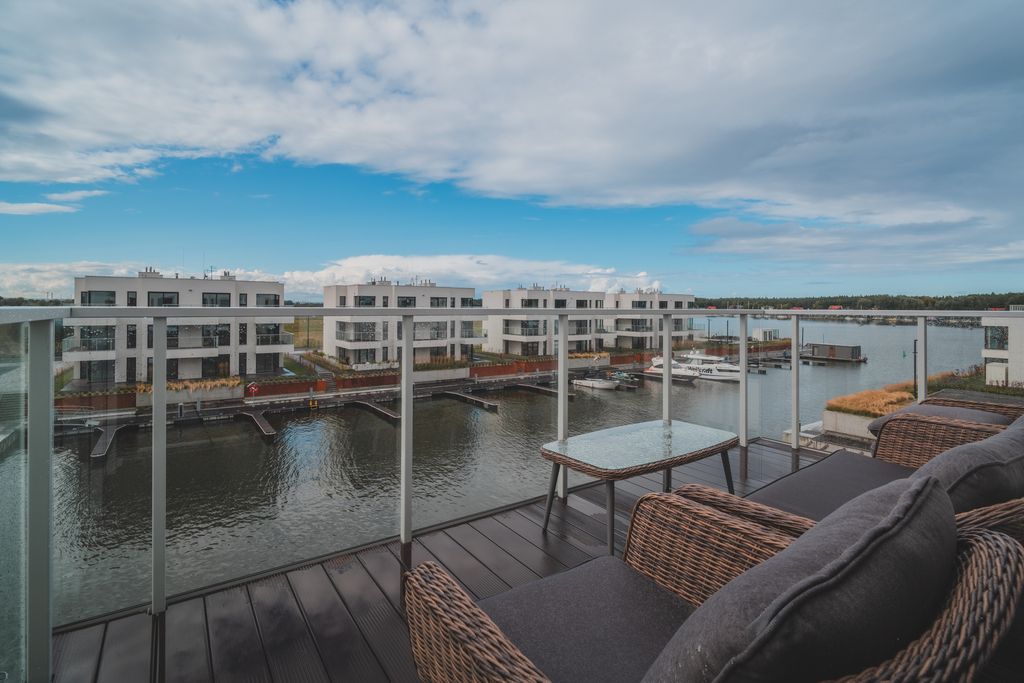 - Taras (ok. 9,5 m²): idealny na poranną kawę i relaks z widokiem na wodę.