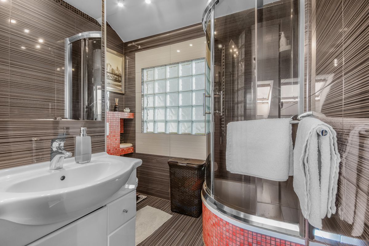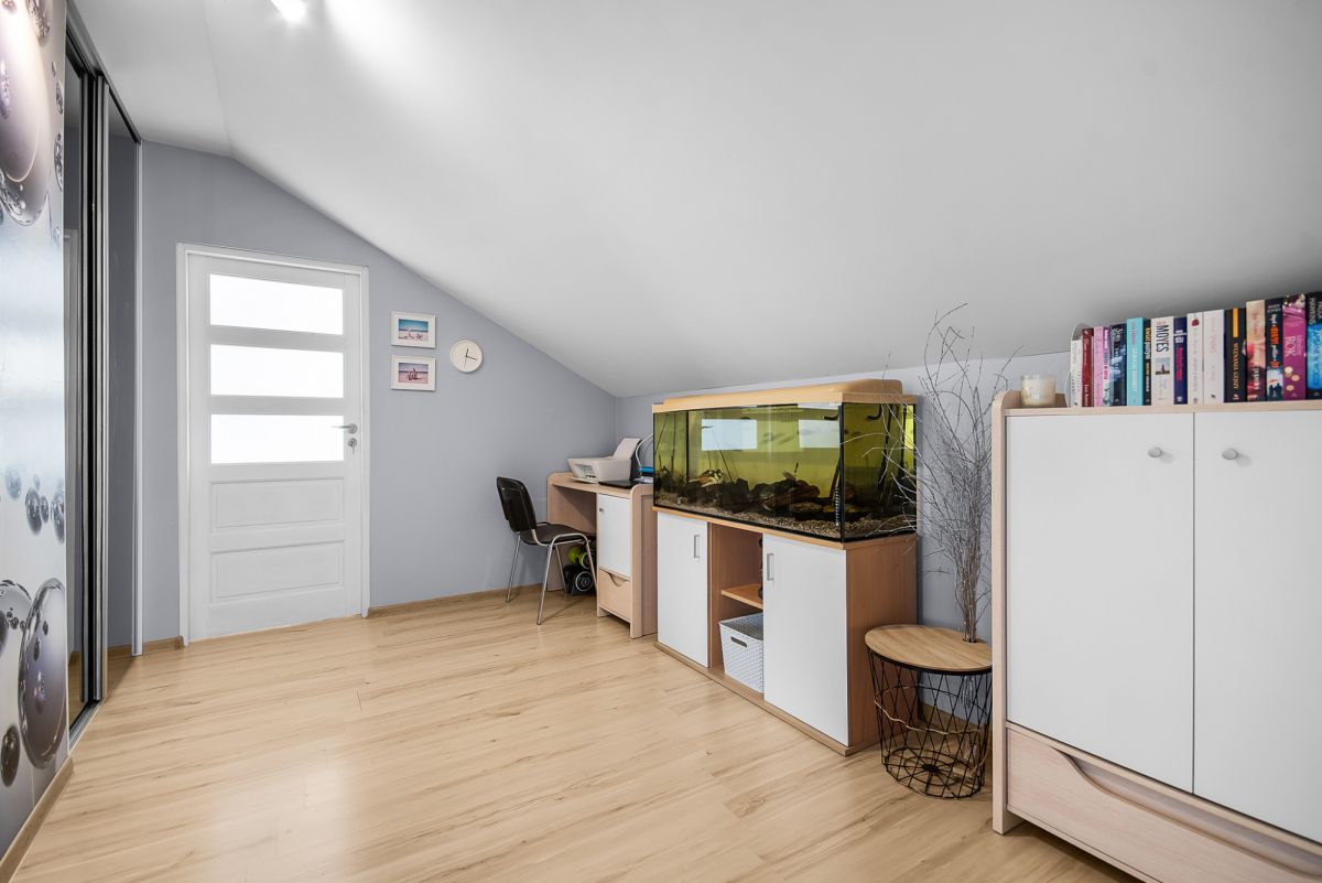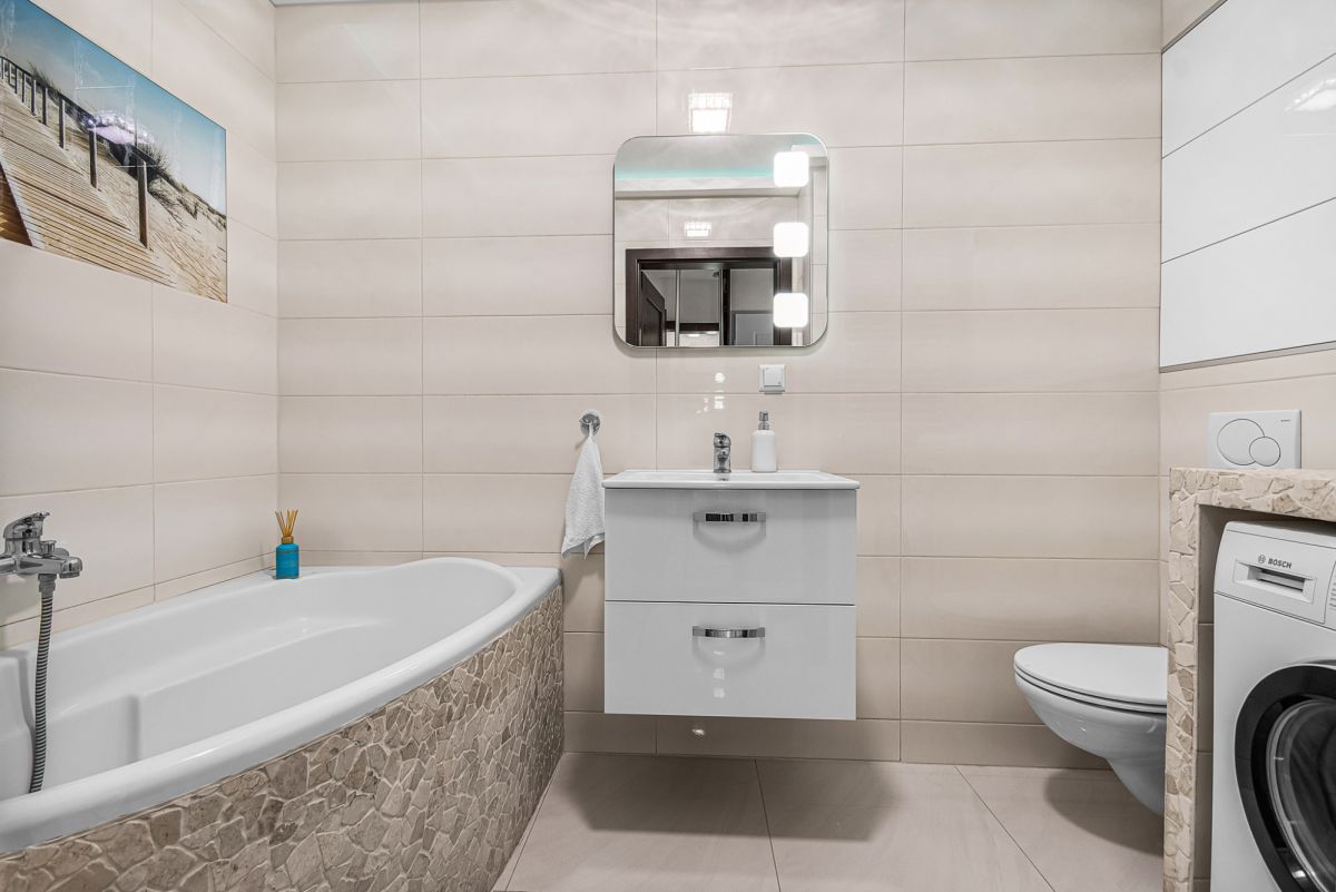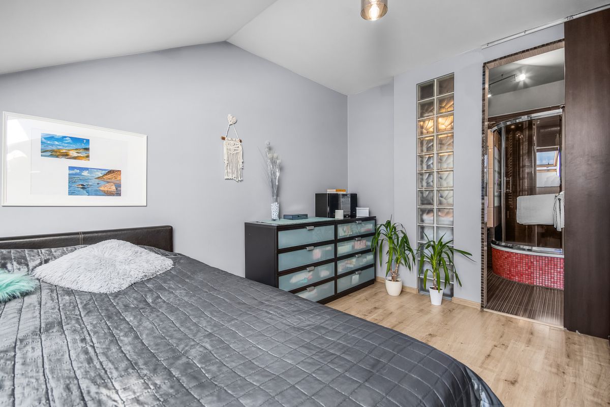 Na tym samym poziomie jest także osobna łazienka z wanną oraz jedna z sypialni.
