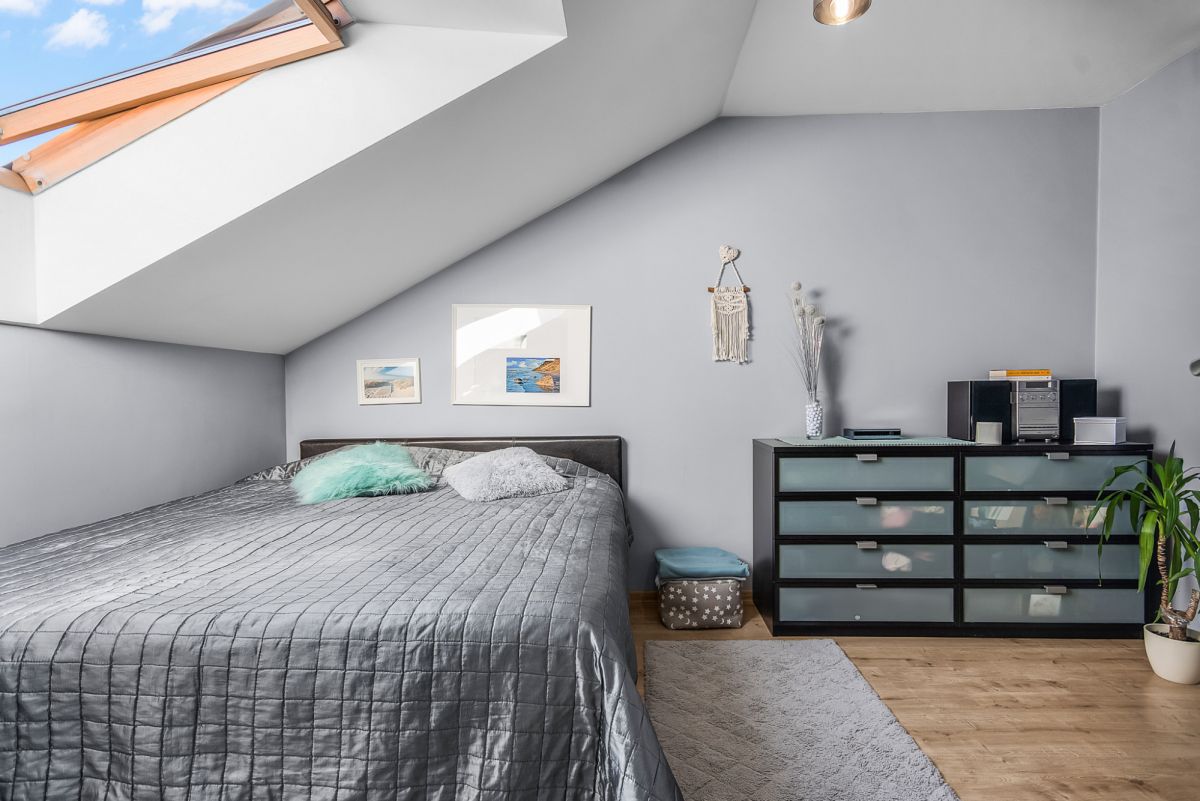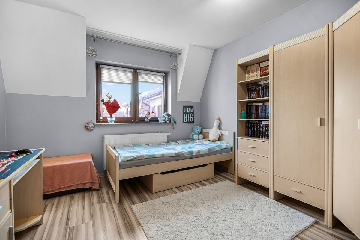 Z dużych plusów mamy tu 3 sypialnie, w tym jedna z prywatną łazienką. Druga z sypialni ma 22 m2 powierzchni co może pozwolić Ci podzielić ją na dwie i wtedy to już masz 4 sypialnie. Jest dobrze.