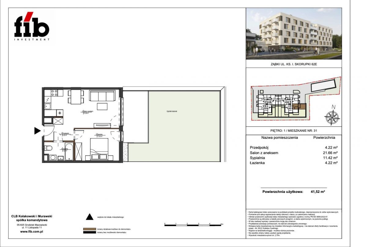 Zapraszamy do zapoznania się z ofertą sprzedaży 2-pokojowego mieszkania w stanie deweloperskim, położonego na 1. piętrze w nowoczesnym, 4-piętrowym budynku w Ząbkach przy ul. ks. Ignacego Skorupki. Nieruchomość wyróżnia się funkcjonalnym układem oraz imponującym tarasem o dużej powierzchni.