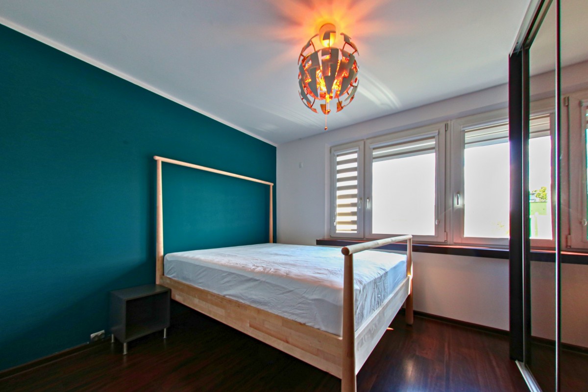 Mieszkanie o pow. 49,30 m2 składa się z dużego salonu z wyjściem na balkon, sypialni, widnej kuchni, łazienki z WC oraz przedpokoju. Wszystkie pomieszczenia są stylowo urządzone i umeblowane.