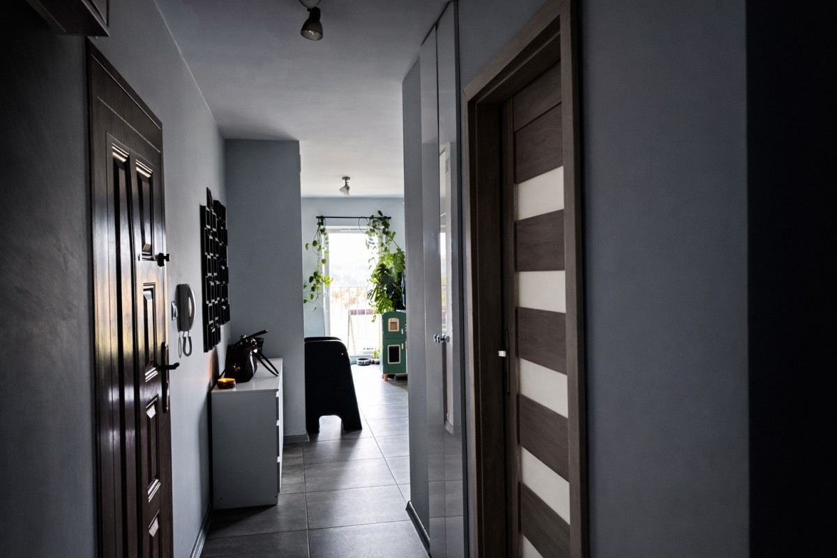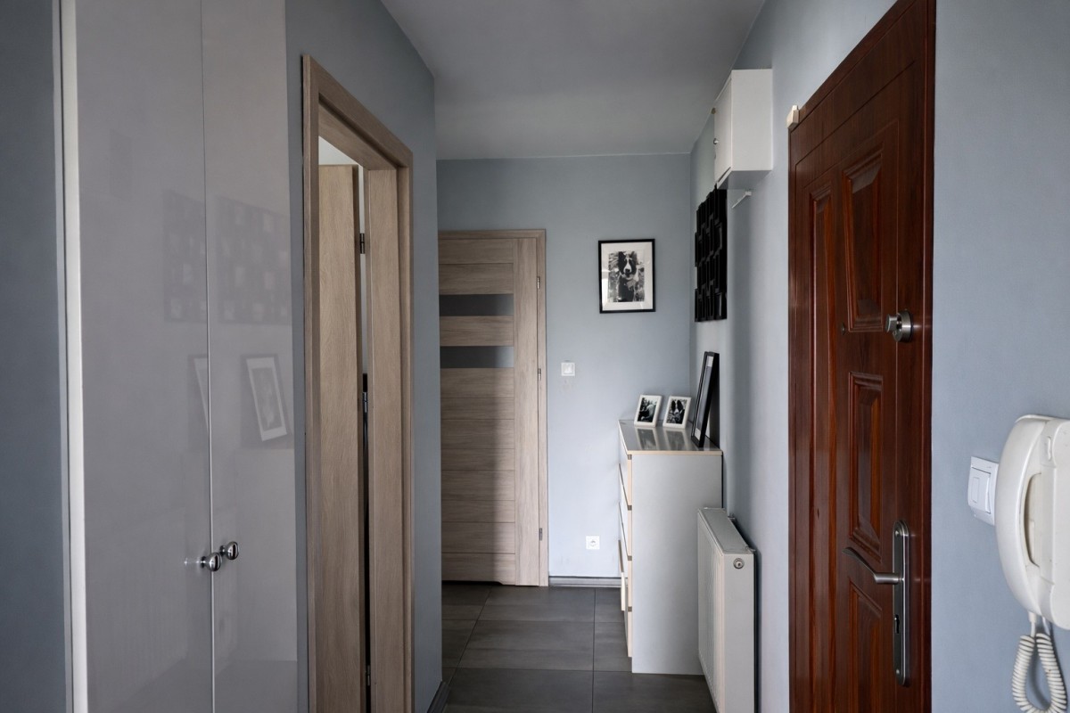 • korytarz z dużą szafą w zabudowie