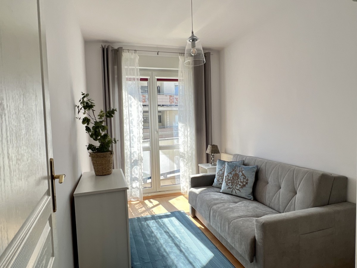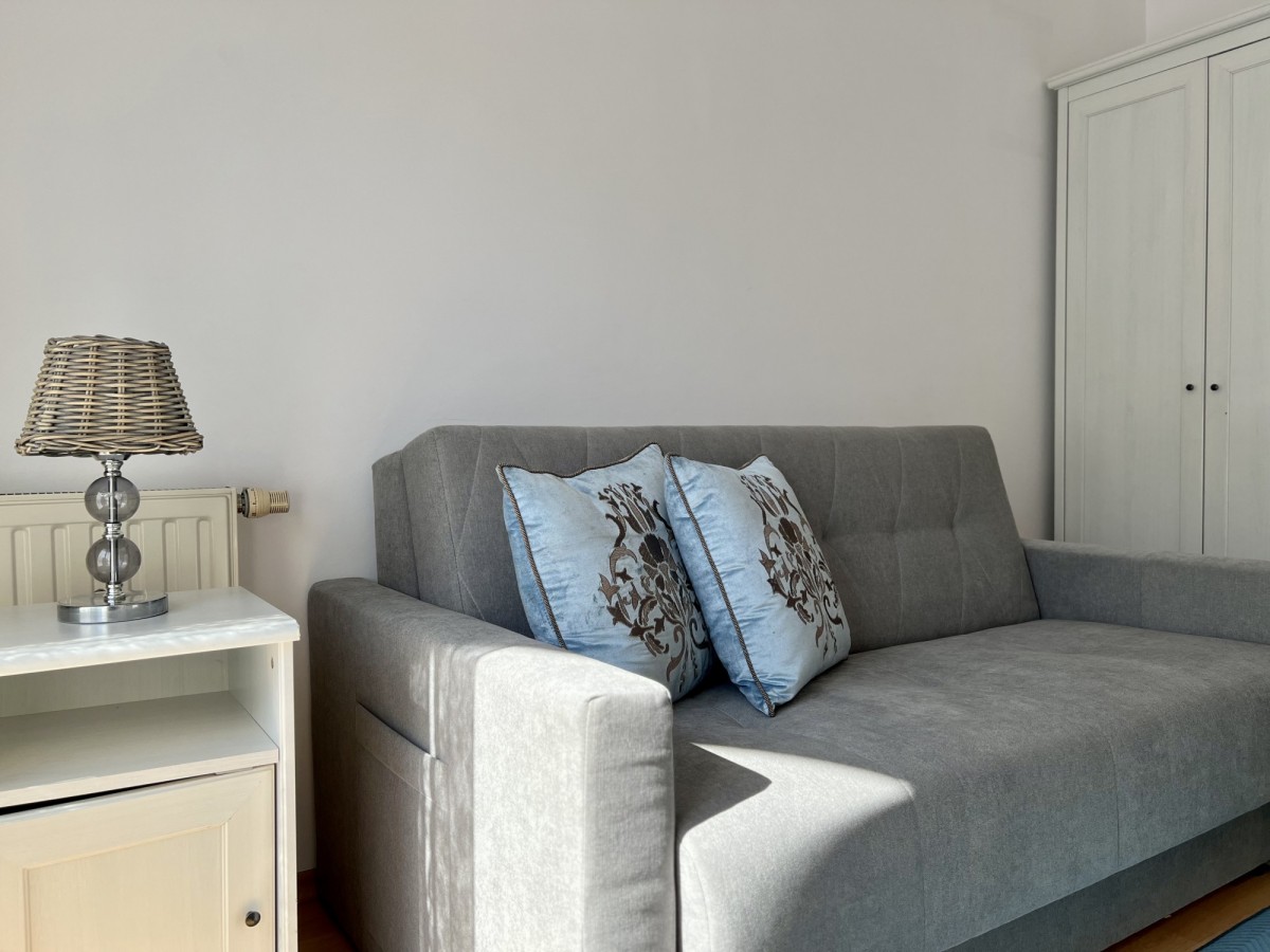 • pokój nr 1: (sofa rozkładana, komoda, stolik nocny, szafa ubraniowa), z pokoju wyjście na balkon