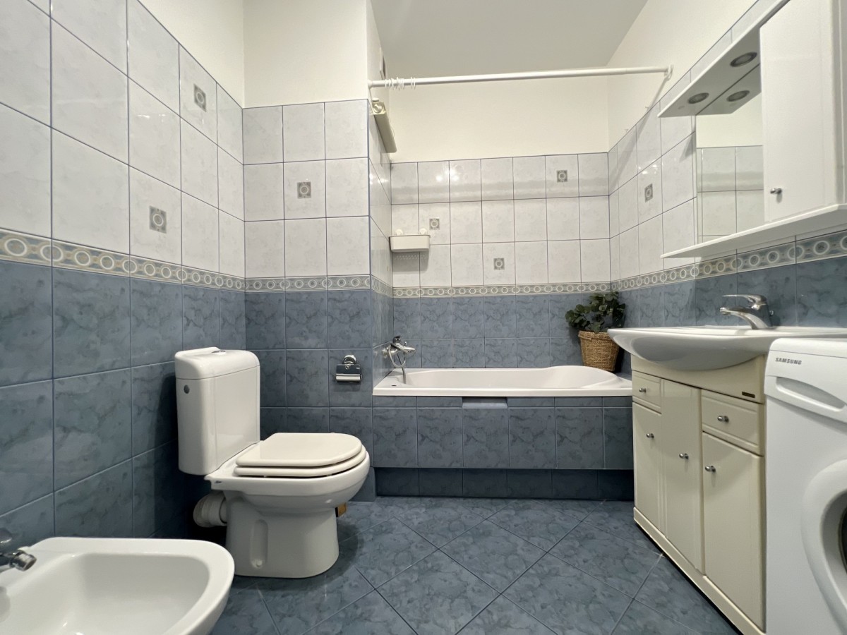 • łazienka z wanną, bidet, pralka