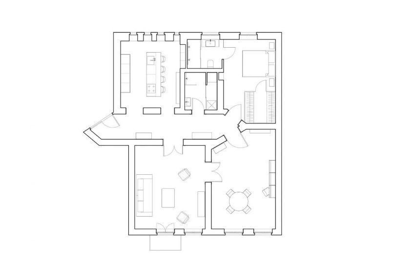 Pomiędzy salonem, a dotychczasowym pokojem biurowym są dodatkowe drzwi.