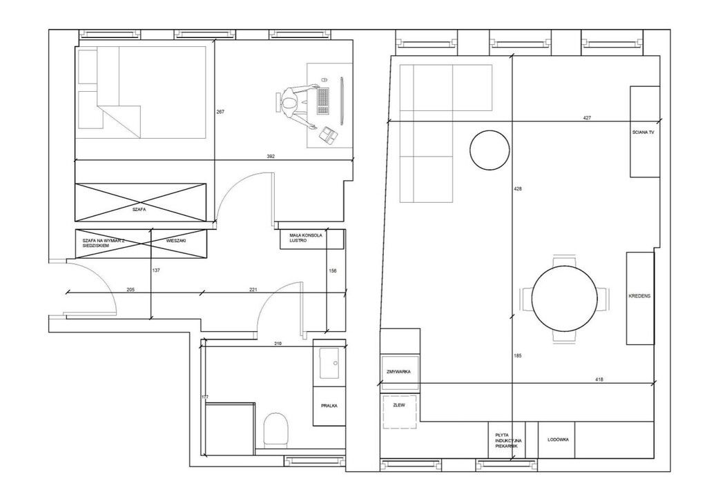 pełni wyposażony w sprzęty AGD (lodówka, zmywarka, piekarnik, płyta indukcyjna, pralka), naczynia kuchenne.