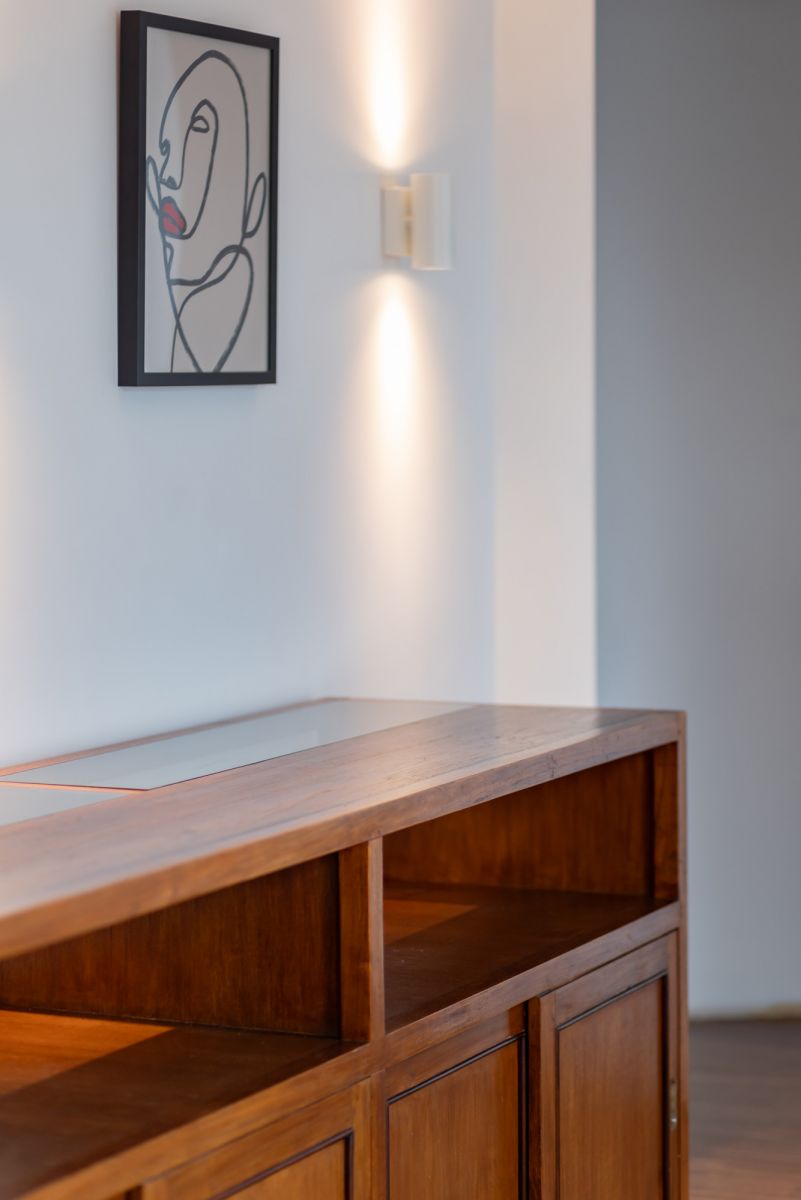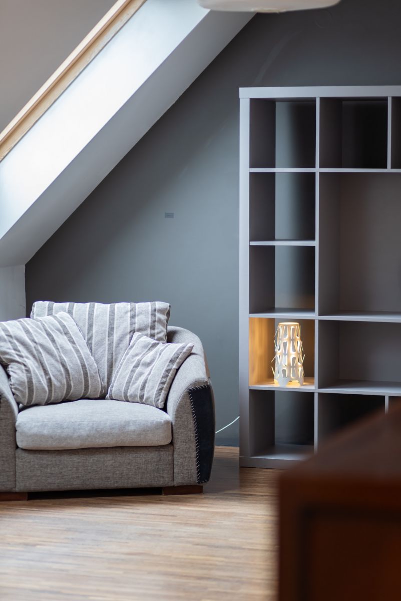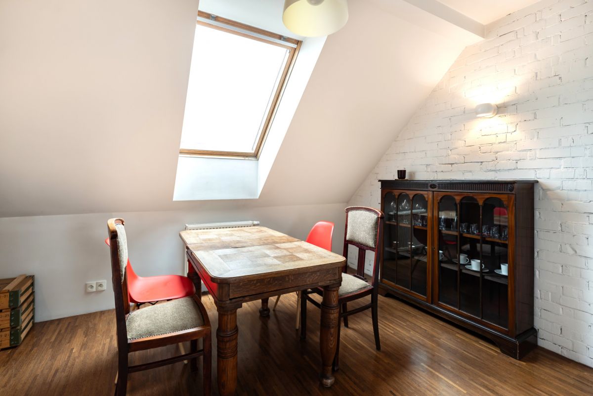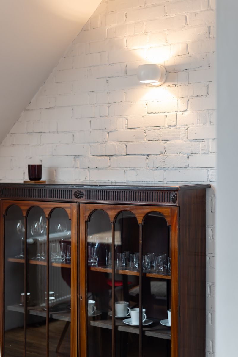 Wnętrze wyróżniają oryginalne detale takie jak odkryta cegła i drewniane elementy konstrukcyjne oraz połączenie nowoczesnego designu z dyskretną klasyką.