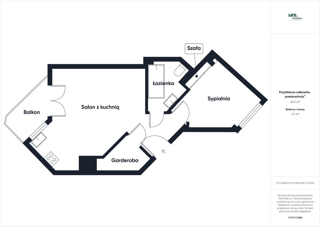 Układ pomieszczeń: - salon z aneksem kuchennym i wyjściem na balkon,
