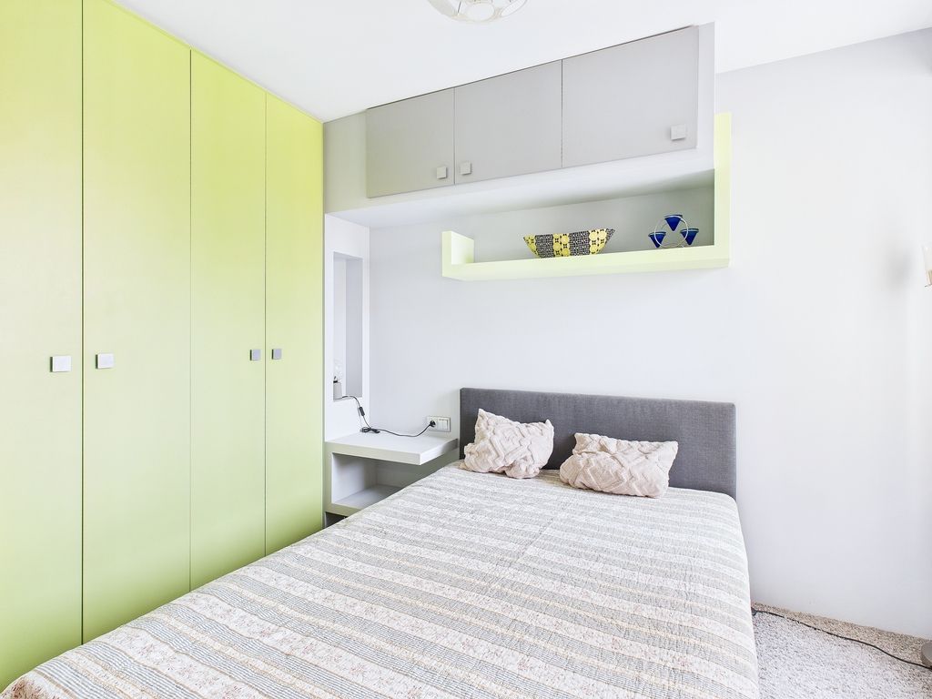 - a bedroom with a large built-in wardrobe and a 140x200 bed,