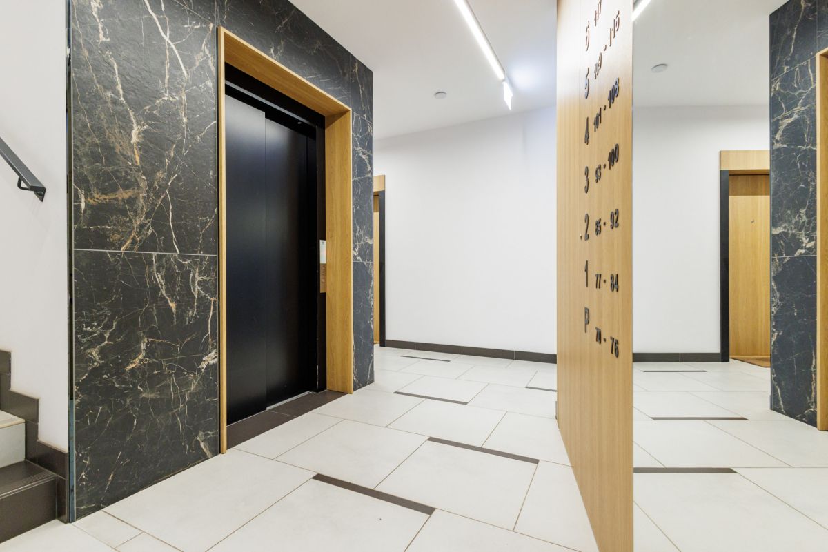 Nowoczesny, kameralny budynek zlokalizowany przy cichej ulicy w dzielnicy Włochy, w otoczeniu nowoczesnej zabudowy.