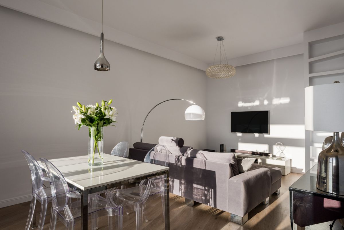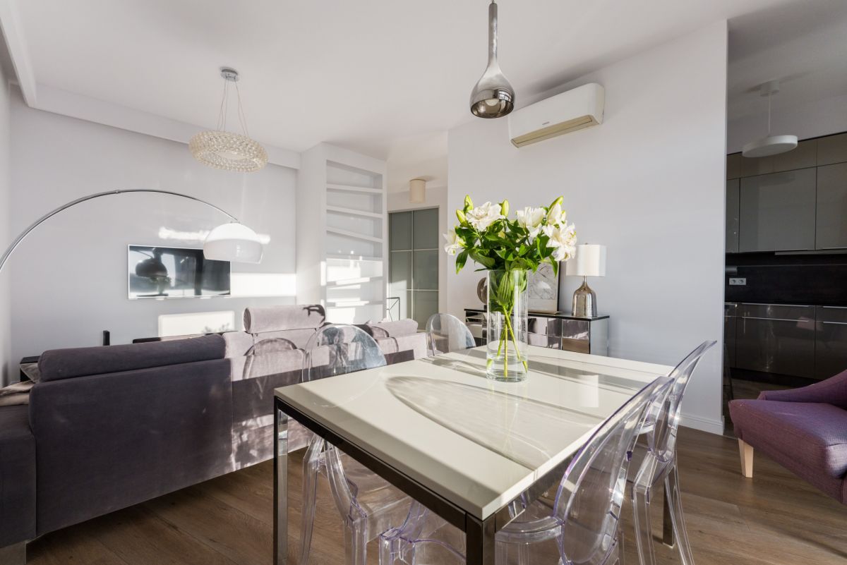Dwustronny układ mieszkania sprawia, że apartament jest doskonale doświetlony przez cały dzień.