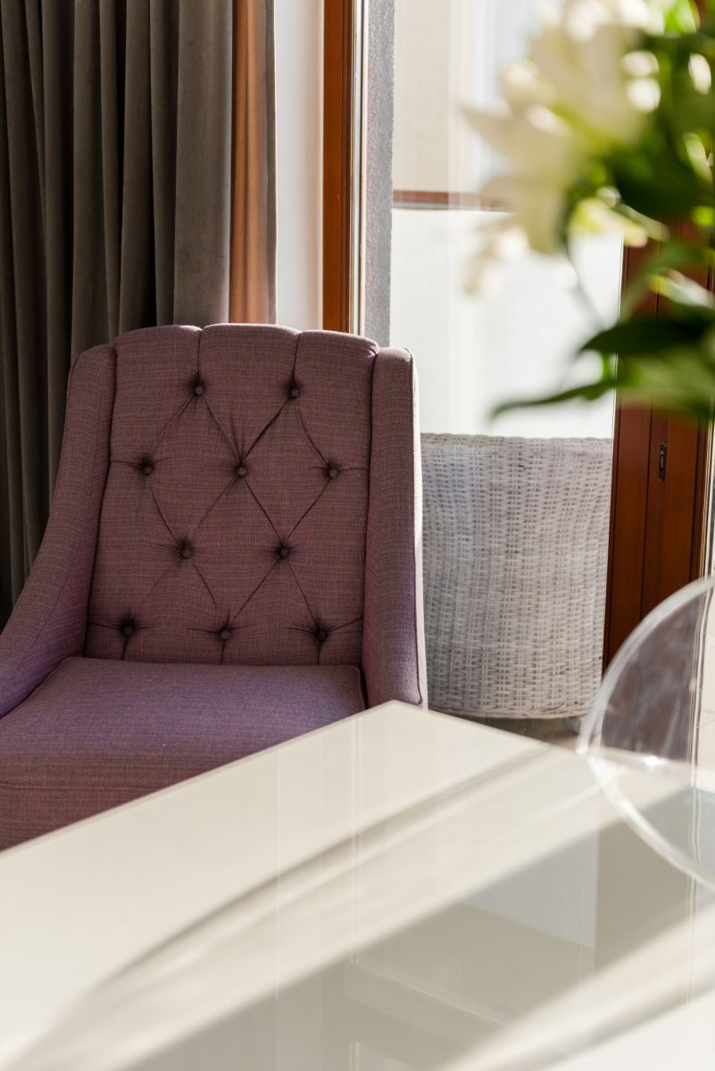 Apartament znajduje się na 7 piętrze, dzięki czemu oferuje spektakularne światło oraz otwartą perspektywę miasta. Zachodnia ekspozycja salonu pozwala cieszyć się popołudniowym słońcem, a wschodnia część mieszkania odsłania panoramę Warszawy widoczną z sypialni.