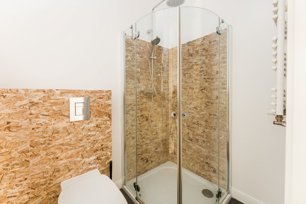* łazienkę z prysznicem, wyposażoną w pralkę, osobną suszarkę oraz pisuar