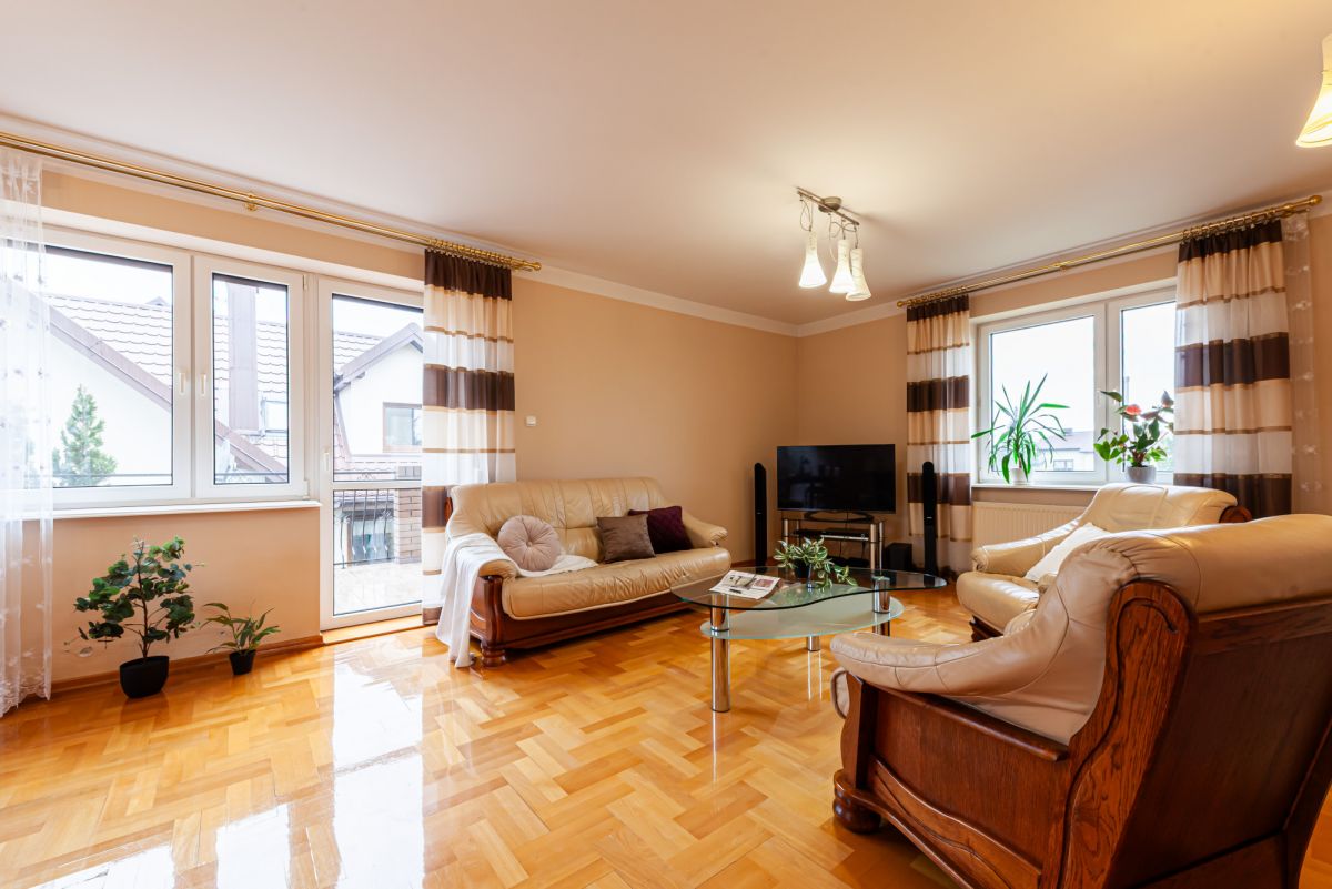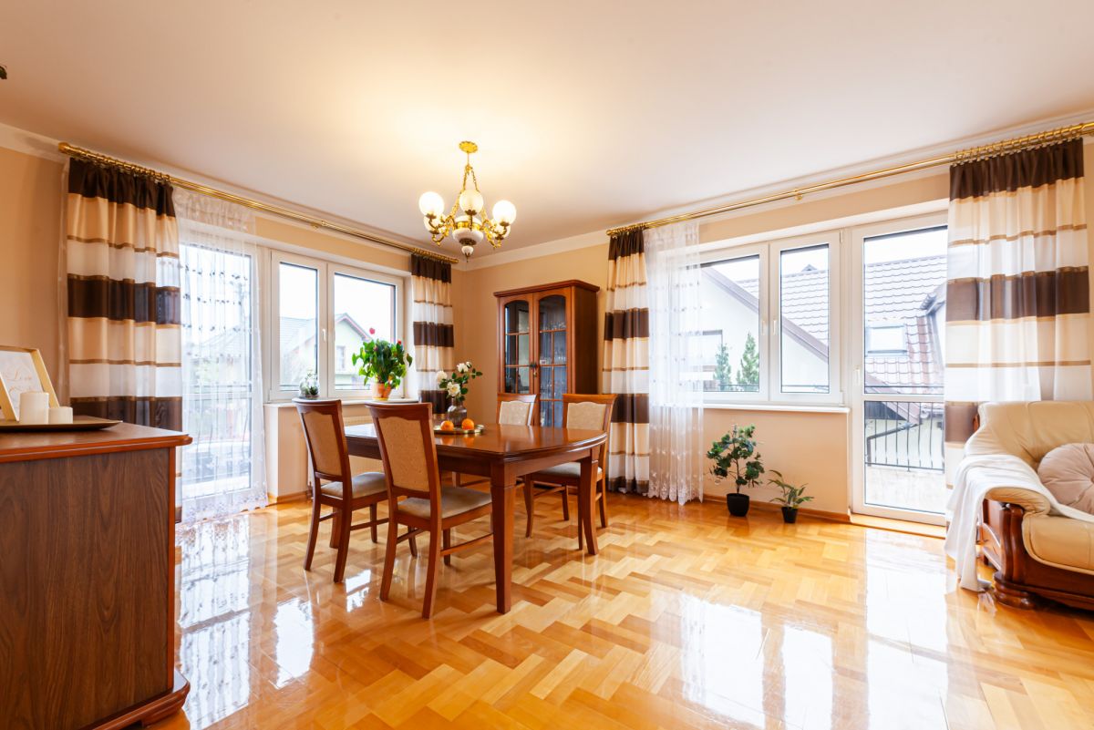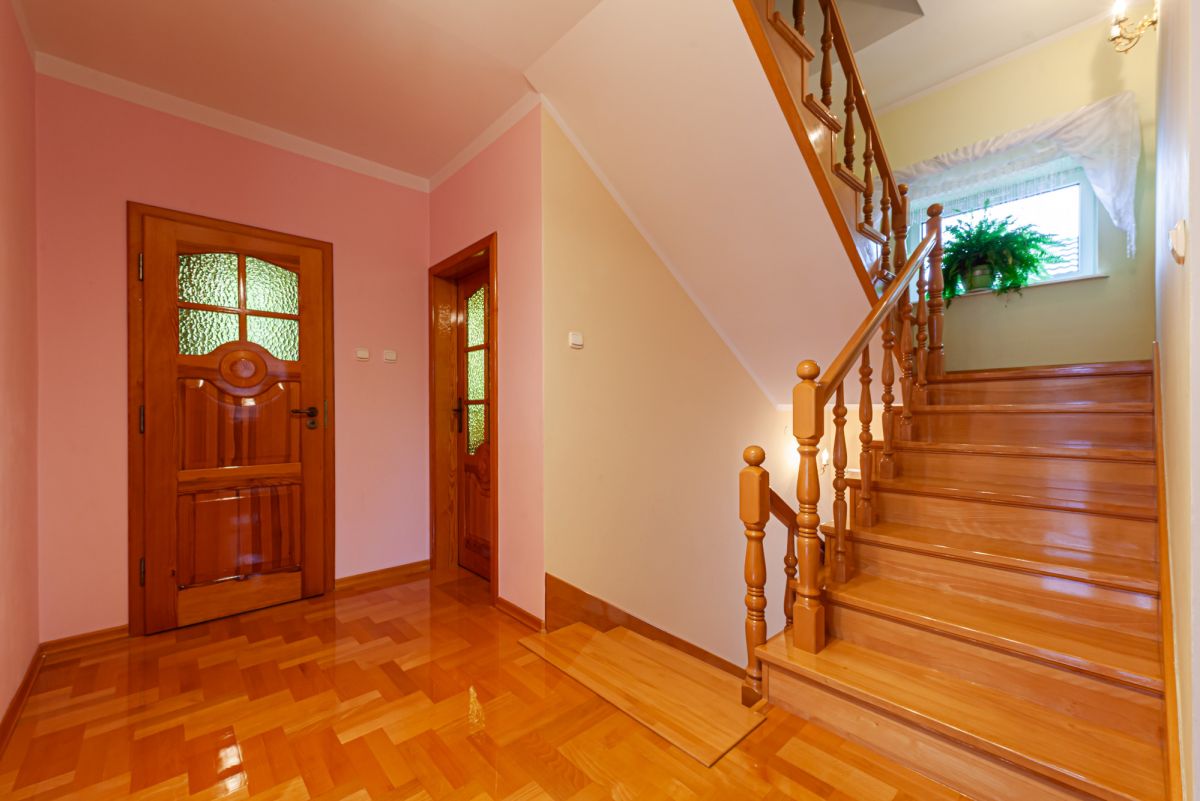 Na parterze znajdują się podłogi parkietowe, natomiast na piętrze panele podłogowe.