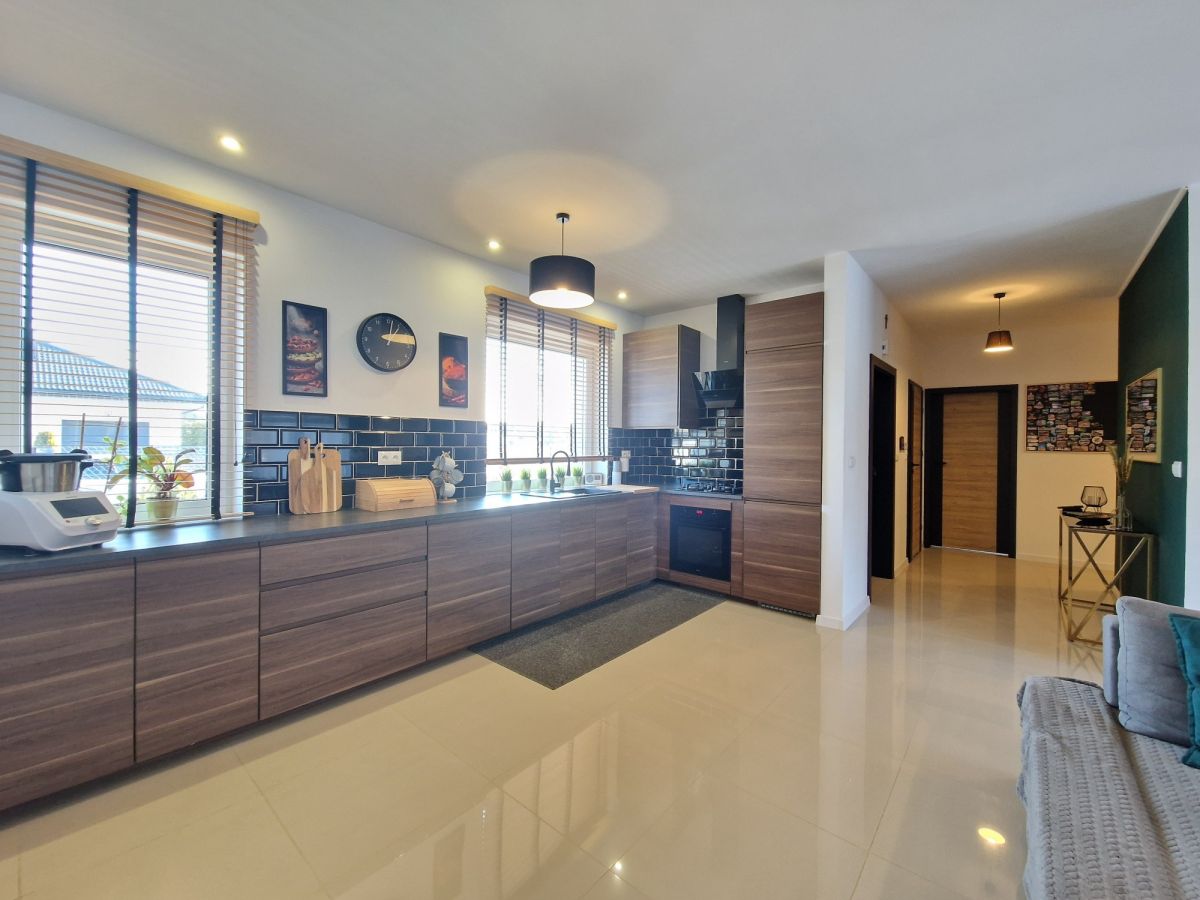Parterowy dom o powierzchni 125m2. Nieruchomość jest gotowa do wprowadzenia, nie wymaga żadnych nakładów finansowych, cena sprzedaży obejmuje wszystkie meble oraz sprzęty AGD a także meble ogrodowe.