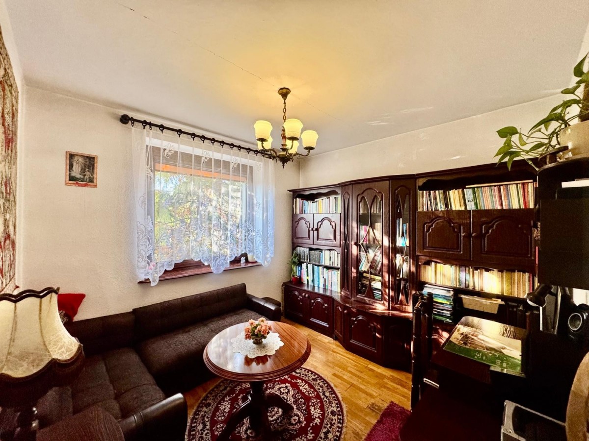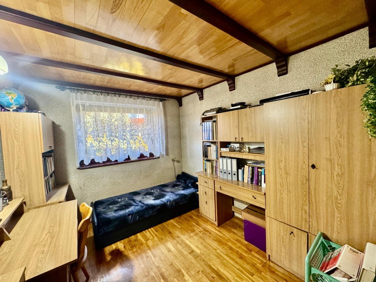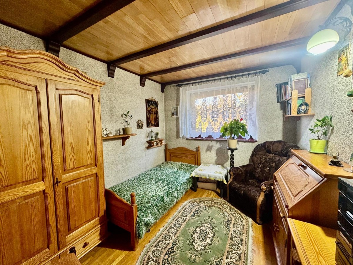 - Na drugiej działce znajduje się budynek gospodarczy o powierzchni 110 m², w którym wydzielono mieszkanie - kawalerkę. Obiekt posiada duży potencjał adaptacyjny - może pełnić funkcję biura, pracowni lub przestrzeni produkcyjnej.