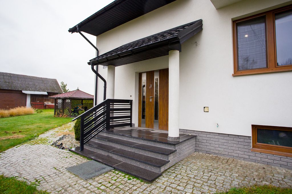 - Technologia: Nowoczesny piec na pellet LAZAR (obsługa raz na 2 tygodnie – komfort niemal jak przy gazie). Dom w pełni docieplony, gotowy na fotowoltaikę.