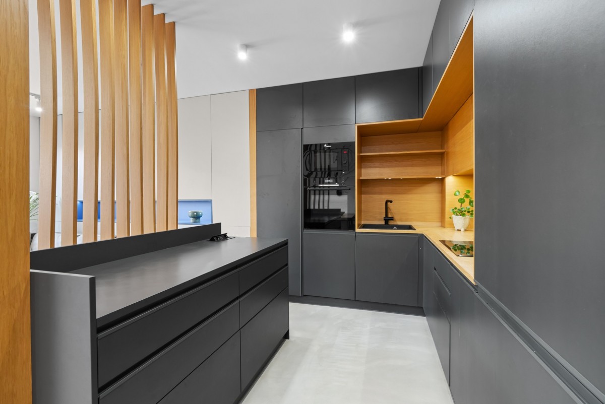 - pełne wyposażenie w kuchni: zmywarka "60", płyta indukcyjna, piekarnik, mikrofalówka, lodówka z zamrażarką
