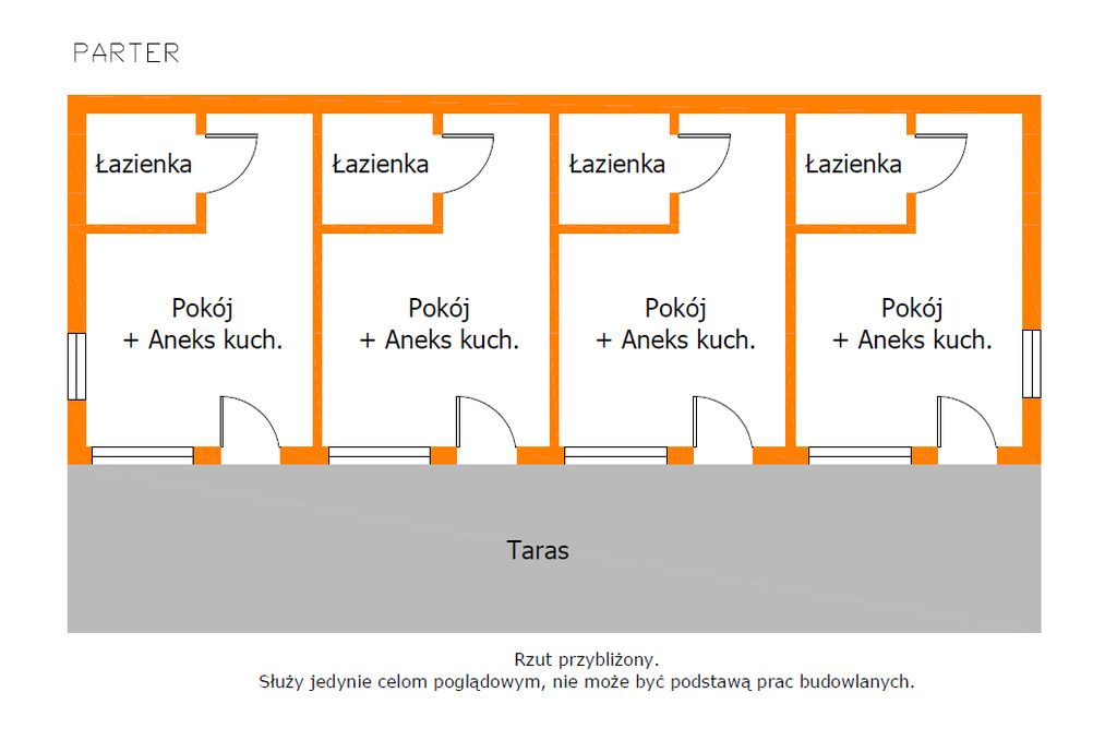 Pawilon Hotelowy: 8 niezależnych apartamentów typu studio (łazienka aneks). Solidny budynek, idealny pod wynajem krótkoterminowy.