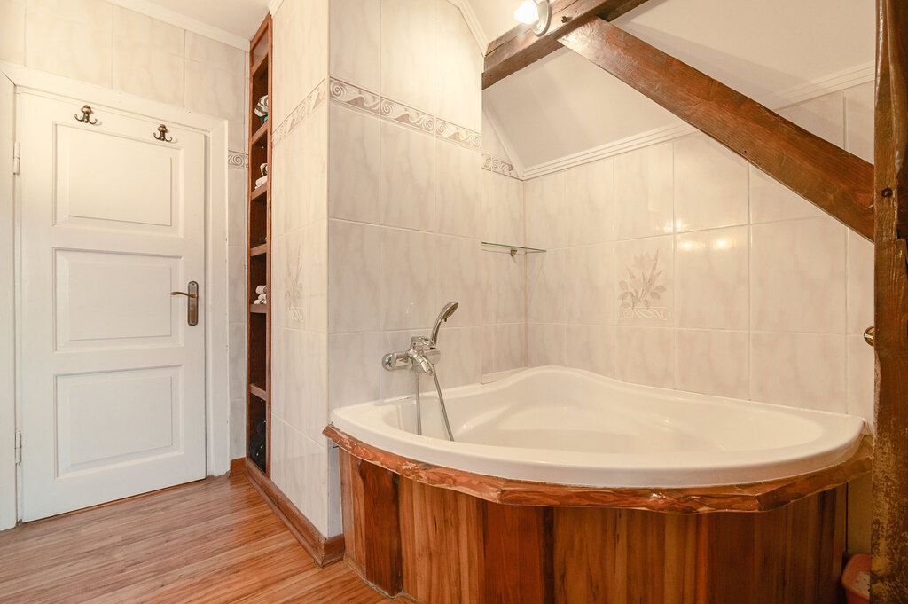 Parter tego budynku to tętniące życiem serce, w którym rzemieślnicza klasyka płynnie łączy się z codzienną wygodą. Oryginalne, zadbane podłogi nadają jadalni i salonowi niepodrabialny charakter, tworząc tło dla długich zimowych wieczorów przy trzaskającym ogniu. Zapach parzonej rano kawy poprowadzi Cię z widnej kuchni prosto na gęsty, zroszony trawnik, gdzie starannie zaplanowane nasadzenia gwarantują całkowitą prywatność przed wzrokiem z zewnątrz.