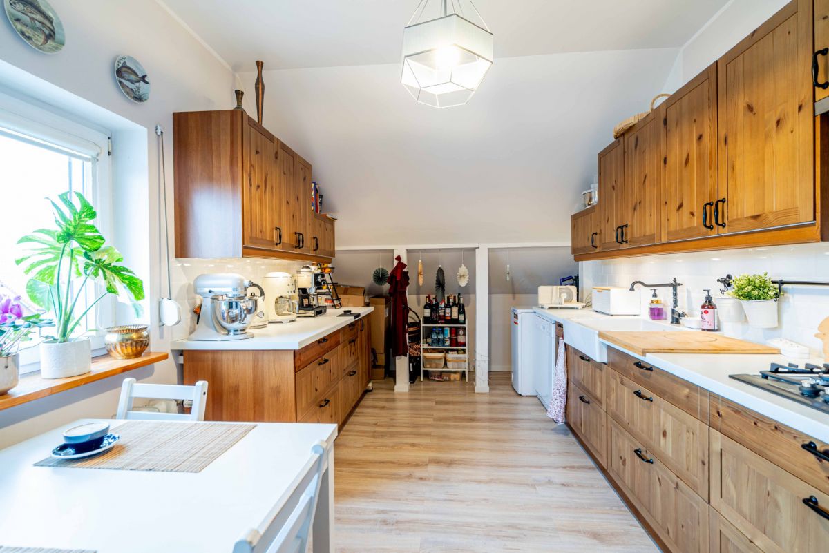 Dom trzykondygnacyjny: przyziemie + wysoki parter + poddasze użytkowe, z dodatkowym strychem. Budynek jest w pełni wykończony, zadbany i