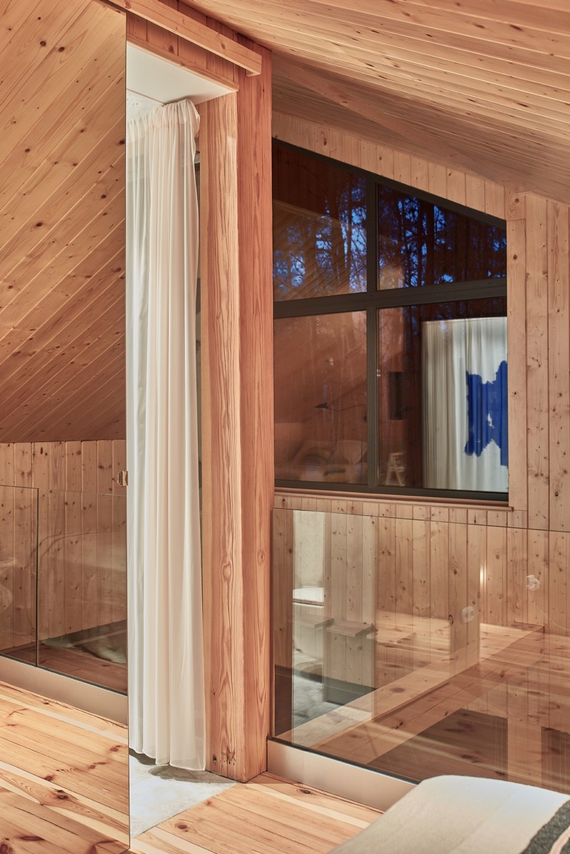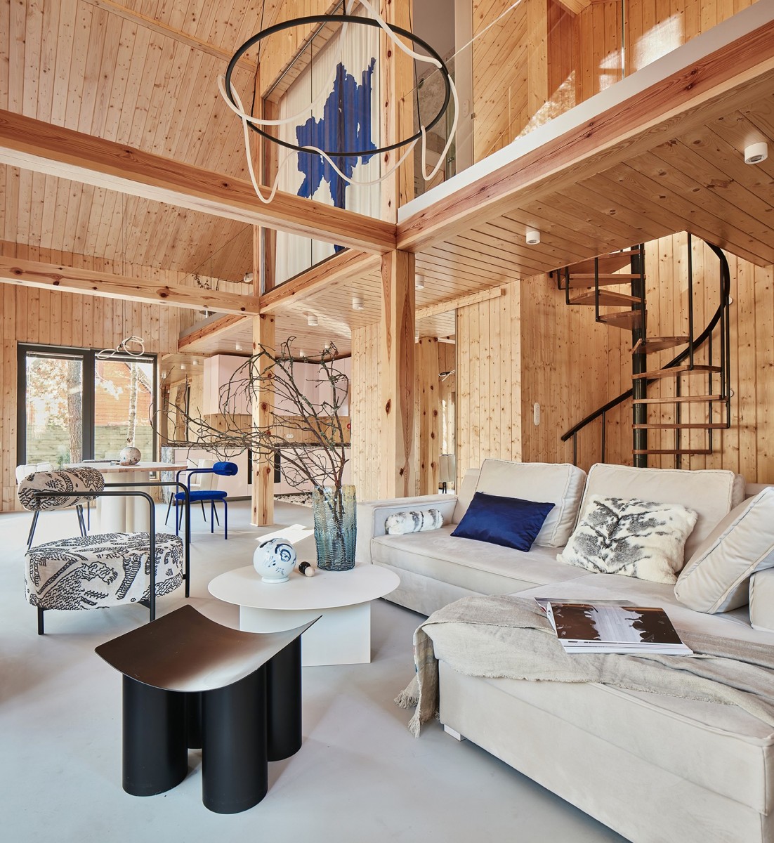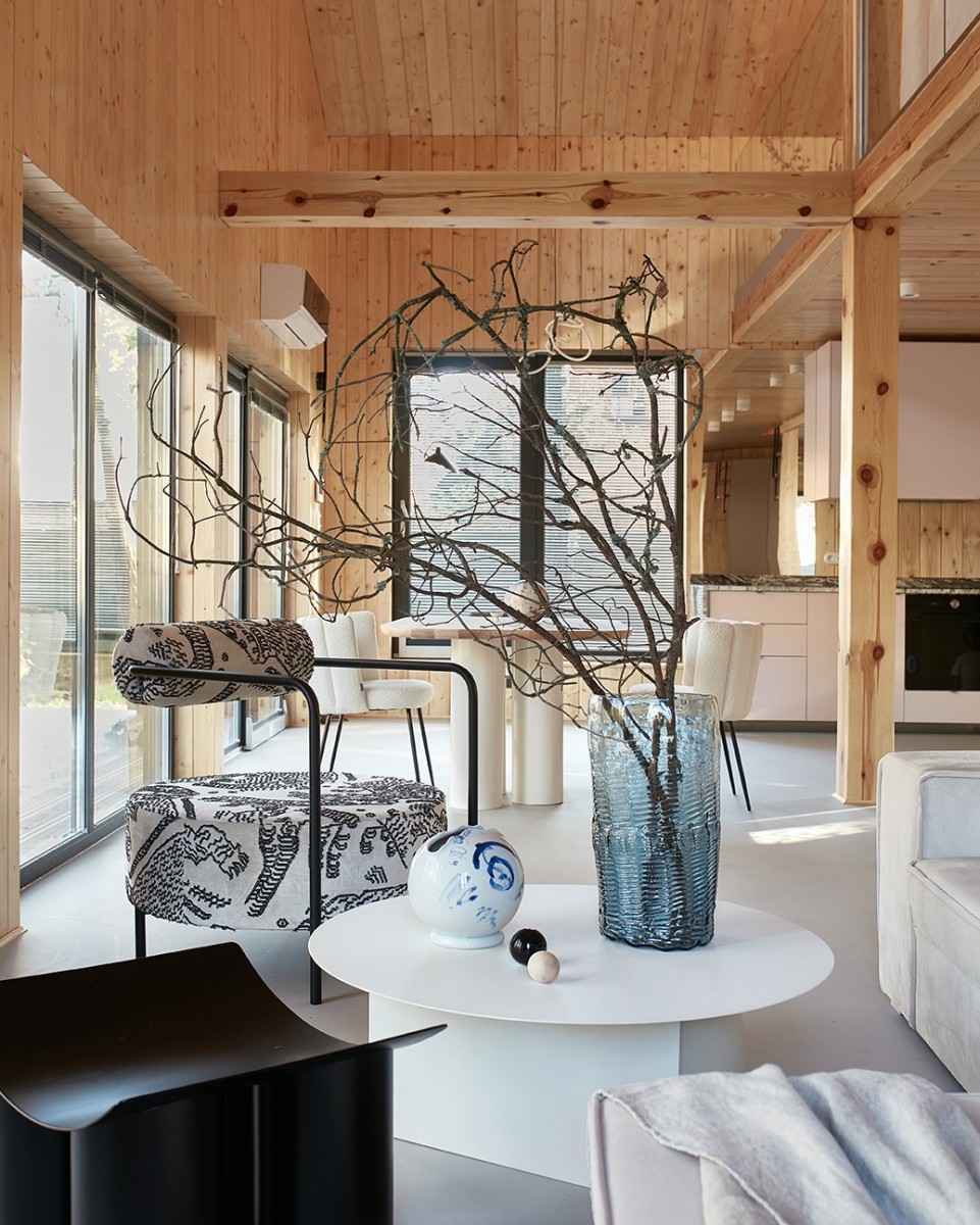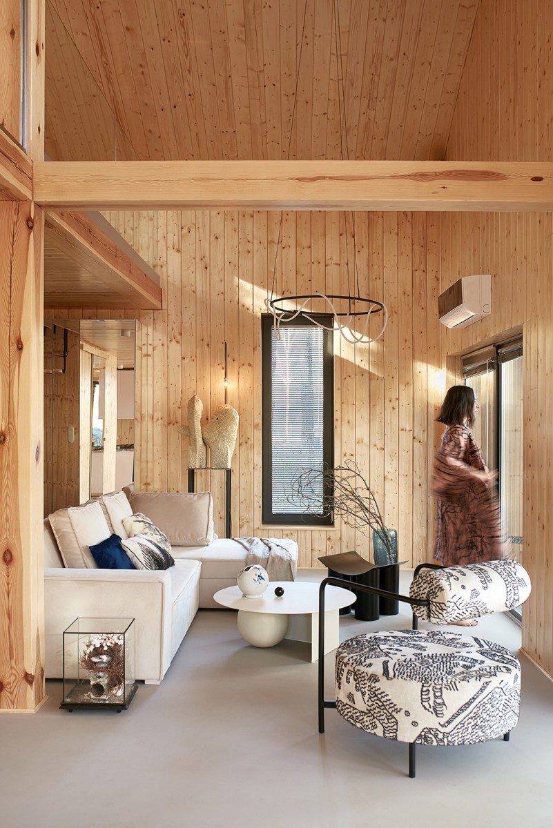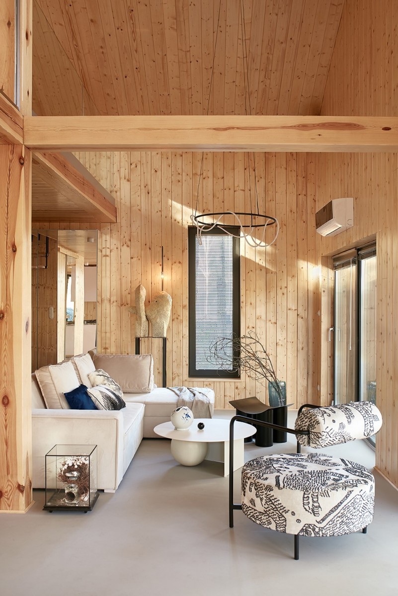 Wnętrza zostały starannie wykończone z użyciem naturalnych materiałów i jasnych barw, inspirowane estetyką japońską.