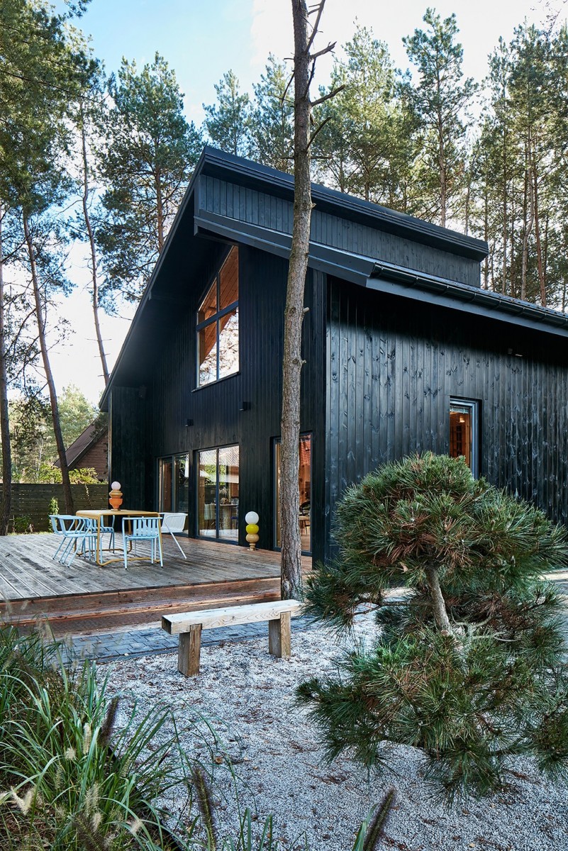 Ten niezwykle dopracowany dom wolnostojący o powierzchni 75 m², na działce 1 362 m², zlokalizowany na terenie dawnej kolonii letniskowej, około 1 godziny jazdy od Warszawy, wśród wysokich sosen. Łączy naturę, sztukę i japońską filozofię prostoty.