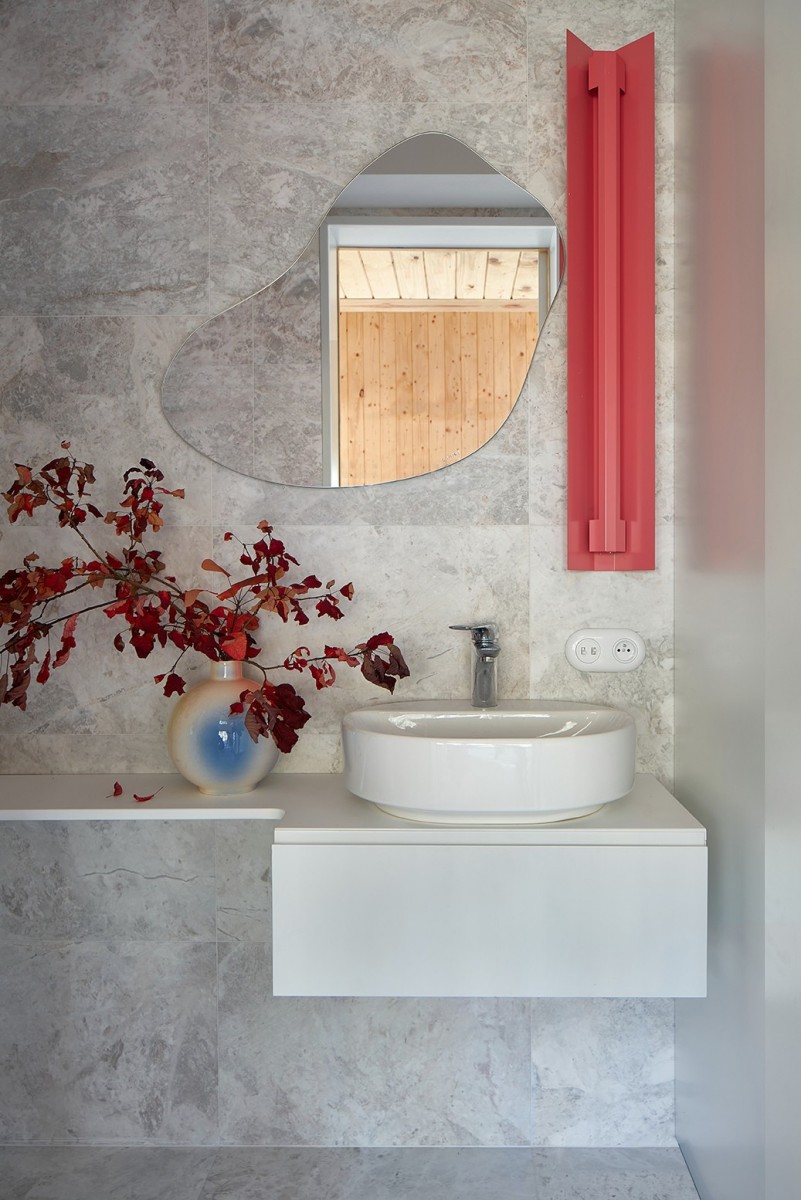 Wnętrze uzupełniają elementy współczesnego polskiego designu oraz autorskie obiekty Joanny Hawrot - m.in. rzeźby, ceramika, szkło, porcelana i oświetlenie. Istnieje możliwość zakupu większości z nich.