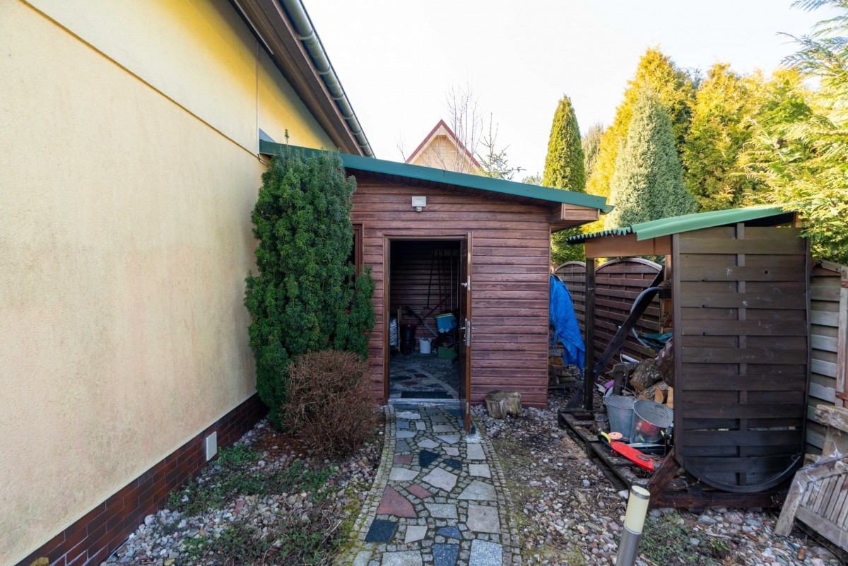 Dom znajduje się na działce o powierzchni 376 m² z prywatnym ogrodem, idealnym miejscem na wypoczynek po dniu spędzonym na plaży. Na posesji znajduje się również miejsce postojowe.