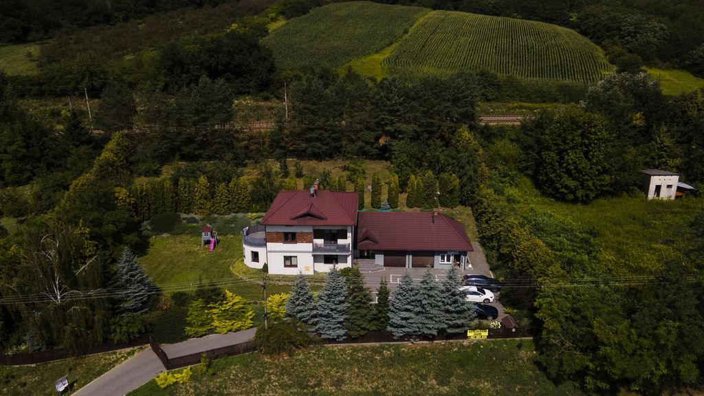 Na posesji znajduje się garaż dwustanowiskowy oraz aż 6 dodatkowych miejsc parkingowych na utwardzonym placu, przystosowanym nawet dla cięższego sprzętu.
