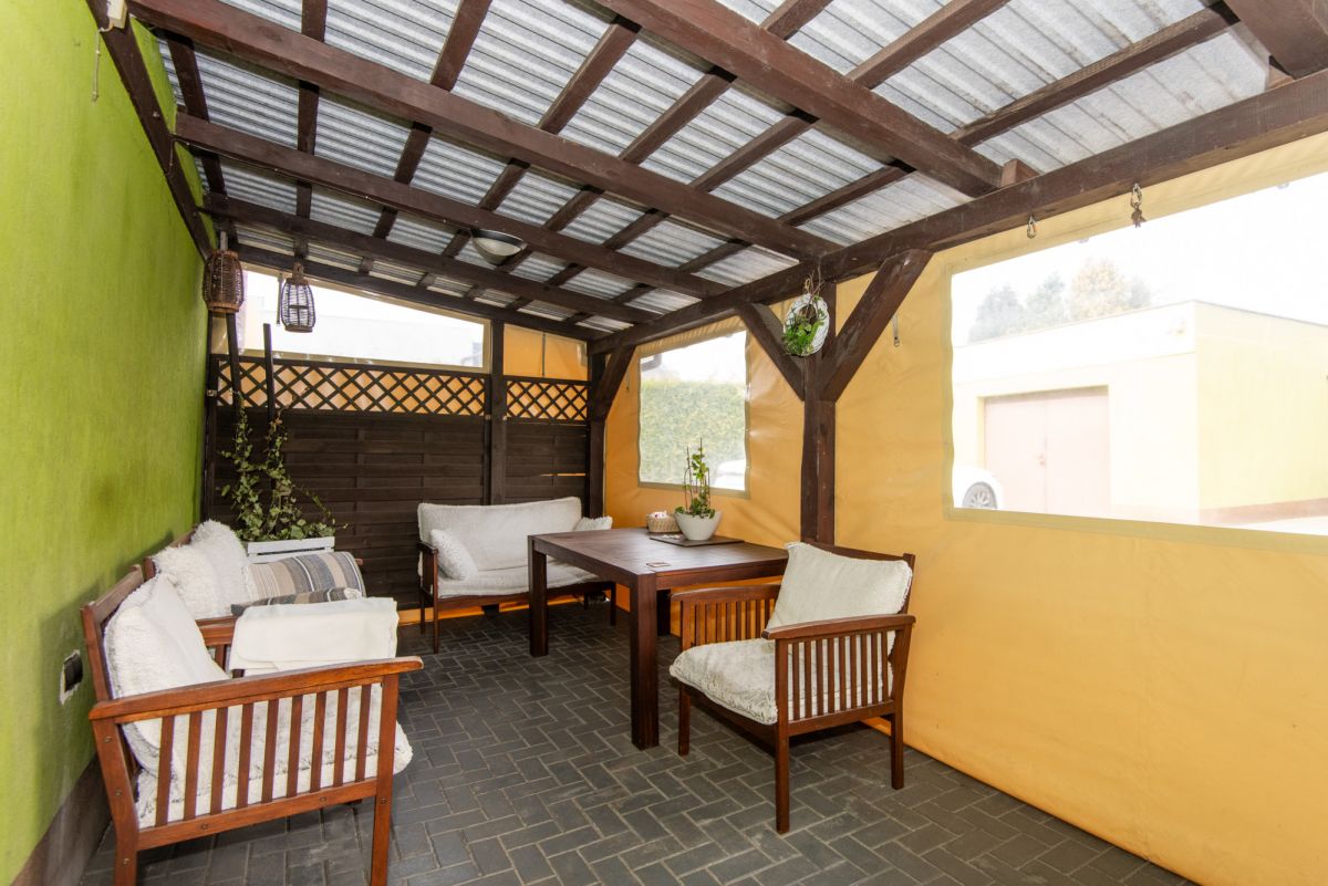 - Taras z zadaszeniem oraz zadbany ogród.